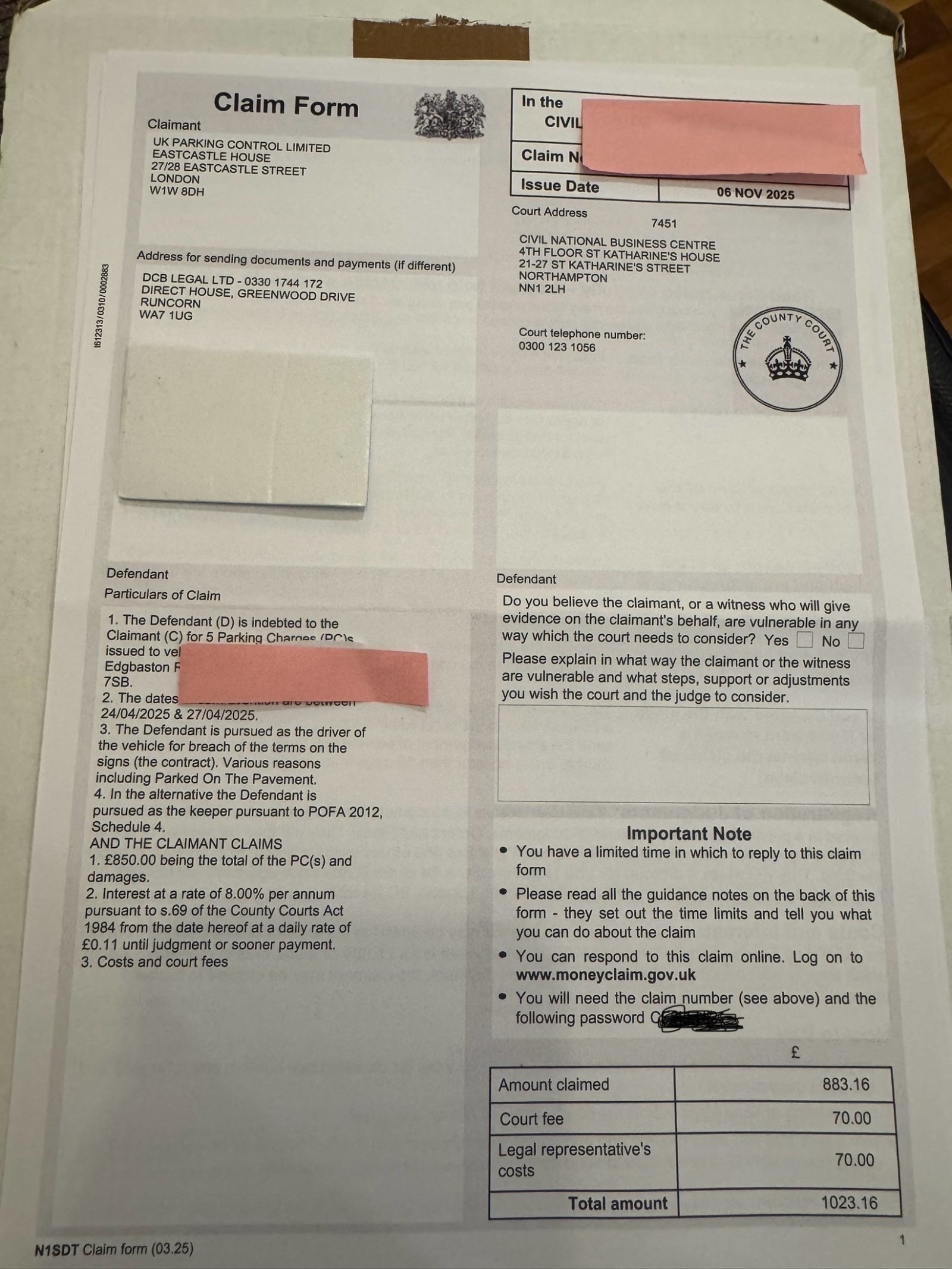 Help Needed: UKPC/DCB Legal Court Claim – Moving Into New Home (5 PCNs)