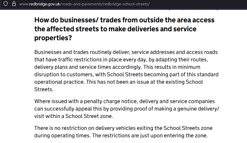 It was under the assumption that because I was delivering a service to a house on the street I would be exempt. The Redbridge Council website states the following in the FAQ.