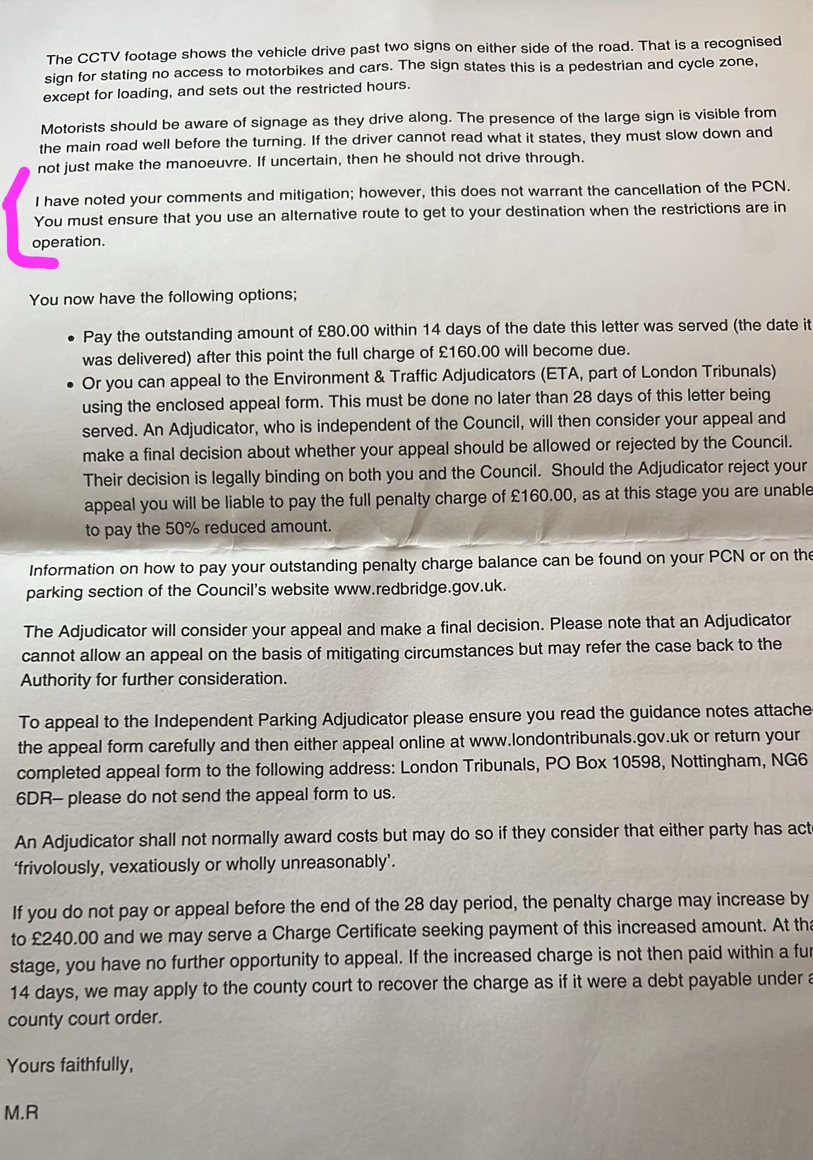 I contested the PCN with evidence of the service provided (a copy of the invoice that was given to the client). I thought this would have been a simple process as stated on their website. It was promptly rejected. It leaves me in a situation that purposefully does not want me to appeal via an adjudicator as my circumstance does not come under the grounds for appeal. Please see the highlighted areas below.
