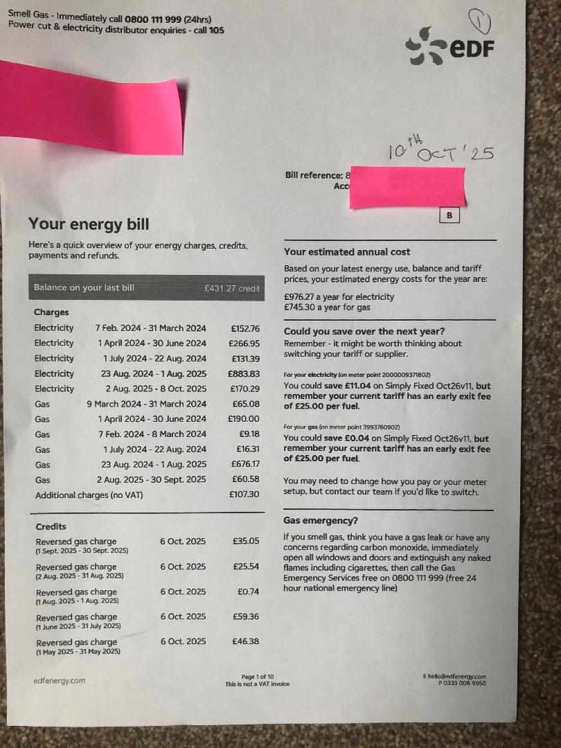Does my bill make any sense to anyone? Why have I gone from £431 in credit to £179? EDF says my meter was incorrect, but haven't stated anything other than that.