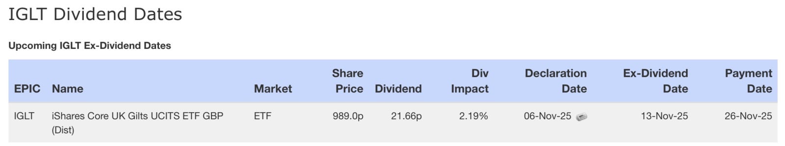 Probably because today it went ex-dividend.aroominyork said:IGLT opened today over 2% down and drifted slightly lower, ending 2.34% down. My Fidelity gilt index fund, valued at midday, was up 0.13%. How does that happen, given they measure a similar index?