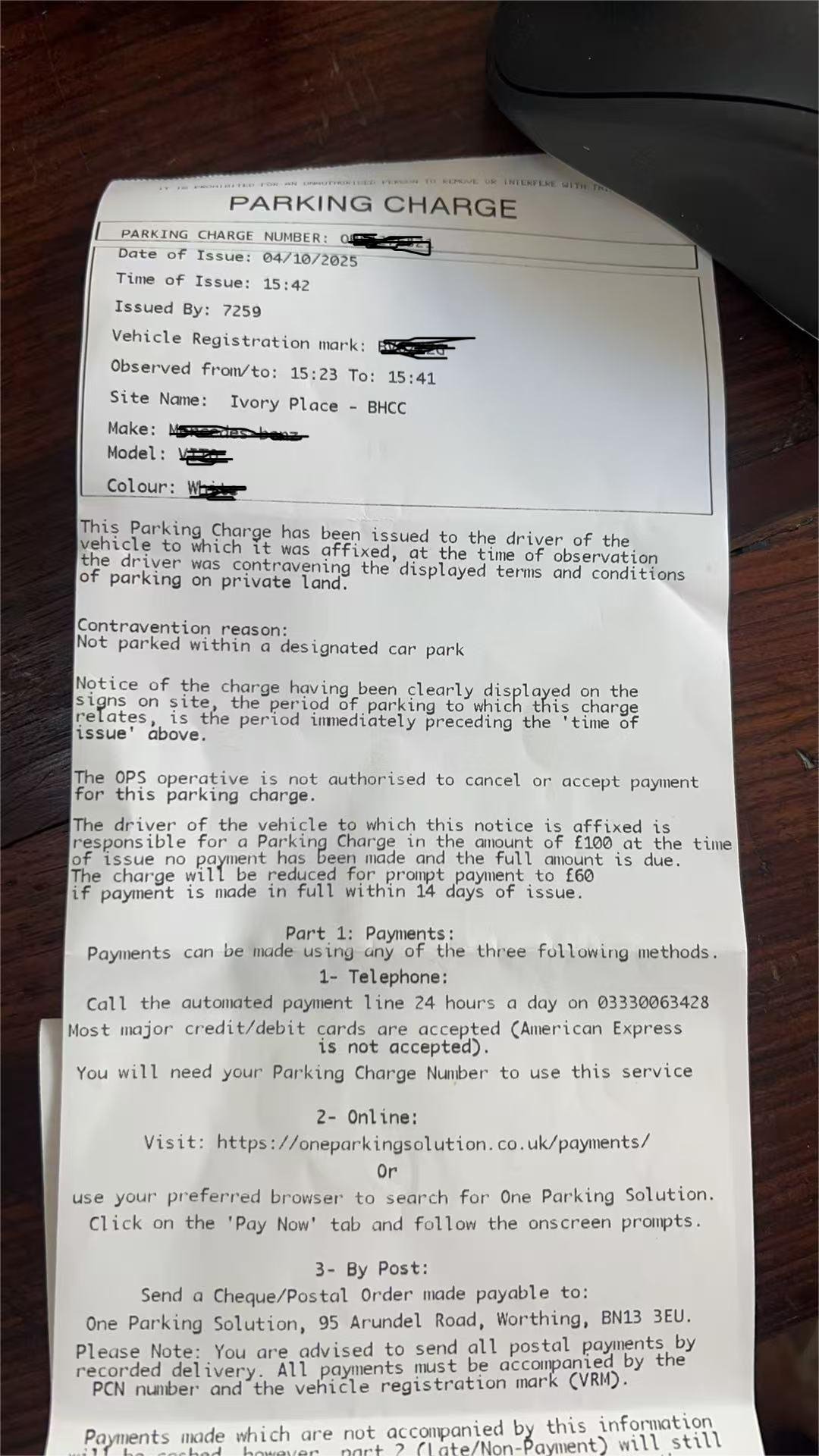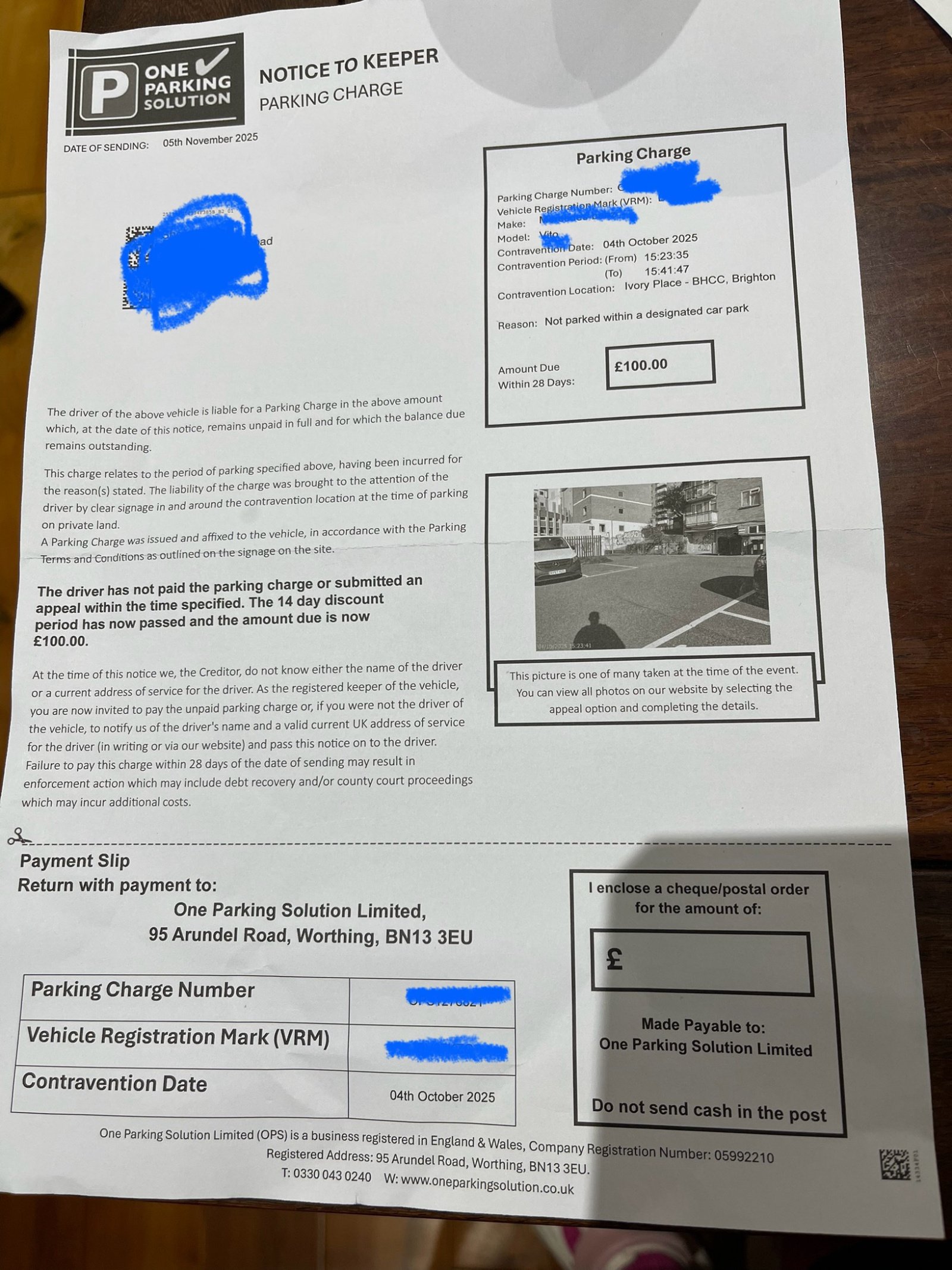 My partner rents a dedicated parking bay (No. 10) through Brighton & Hove City Council. On 4th Oct 2025, the parking bay was occupied by an unauthorised car. My partner tried to contact the Housing Servce team on 4th, but it was a Saturday and no one was there to answer. As he had an important job to do, so he parked his car in another bay with a note left on the dashboard. However, a ticket was left on his windscreen despite of his note on that day. He appealed with Housing Customer Services on 6th Oct and his appeal was rejected on 8th Oct: "We regret to inform you that the ticket cannot be cancelled, as it falls under the terms and conditions you agreed to (please see below for details).