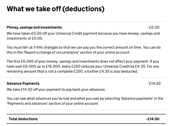 Seeing the UC statement again, there is a deduction for my brother -£93.02. This is extremely minimal? He was paying that weekly under HB, but that's monthly.