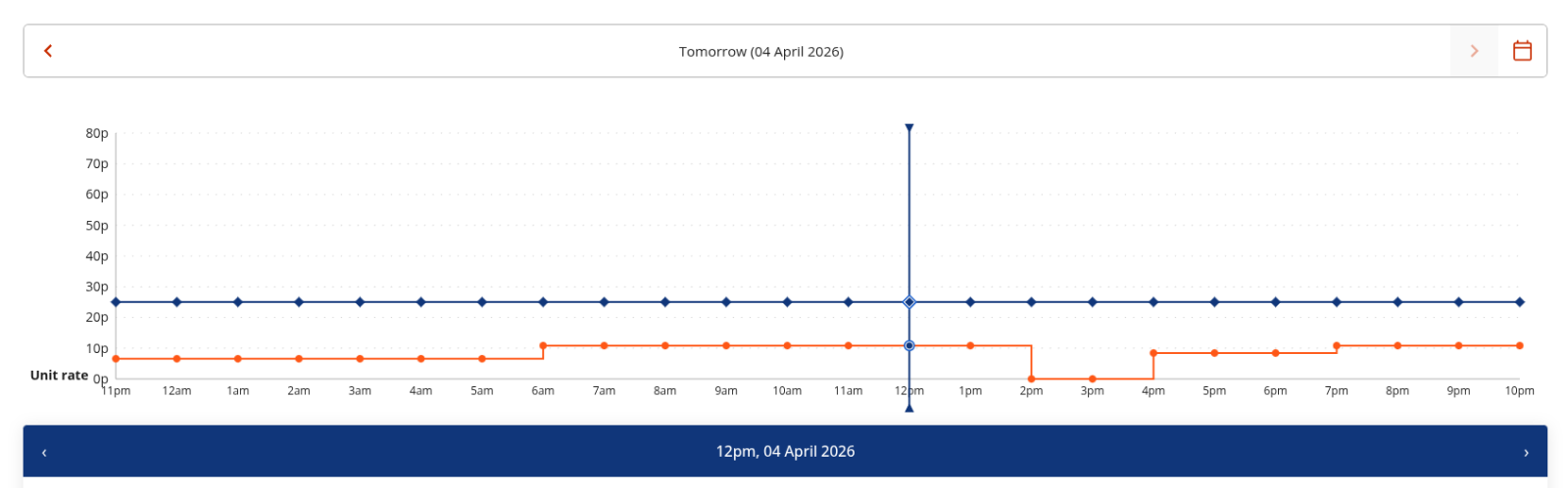 Rates tomorrow include a 3.51p deduction which has been applied to each hour.