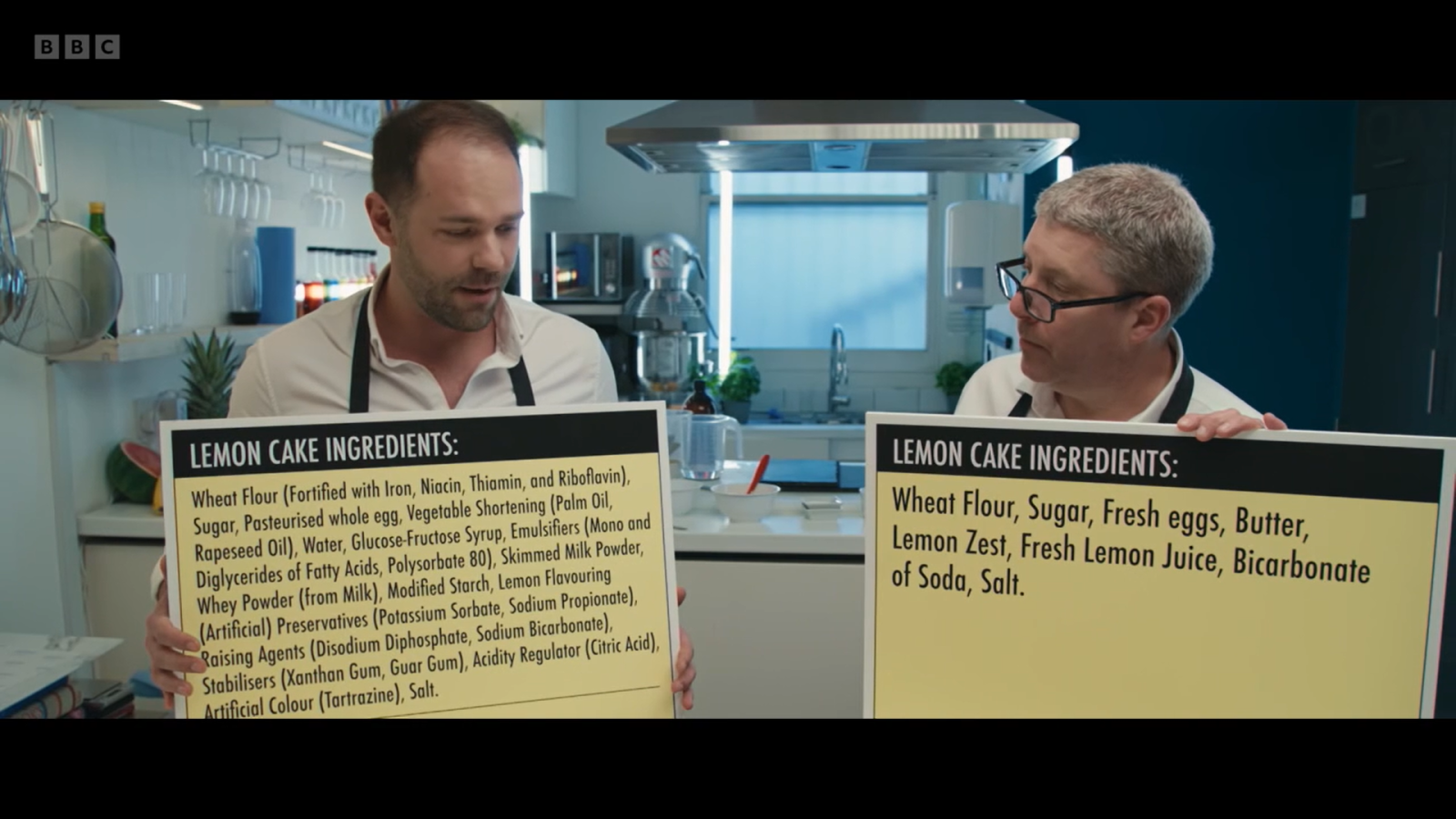 Take a look at the ingredient list for two lemon cakes, one supermarket bought and one homemade (not difficult to guess which is which)