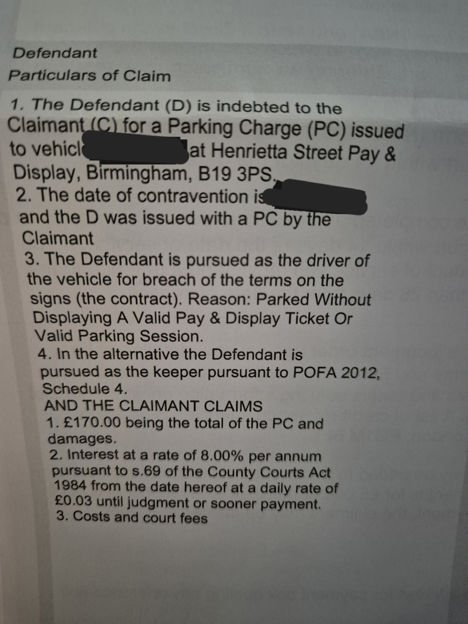 The parking ticket had expired so the vehicle would have been parked without a valid pay and display. However I have already paid the 2 PCN charges that were affixed to the vehicle. This claim is for a third PCN which was not attached on collection.