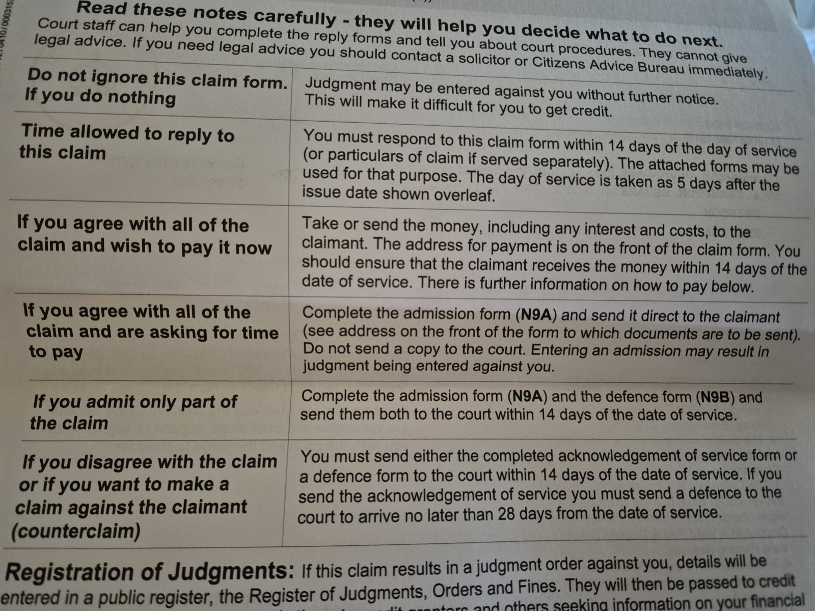 I'm unsure of how to proceed and whether or not I should be completing an acknowledgement of service as the letter states to do so if you disagree with the claim.