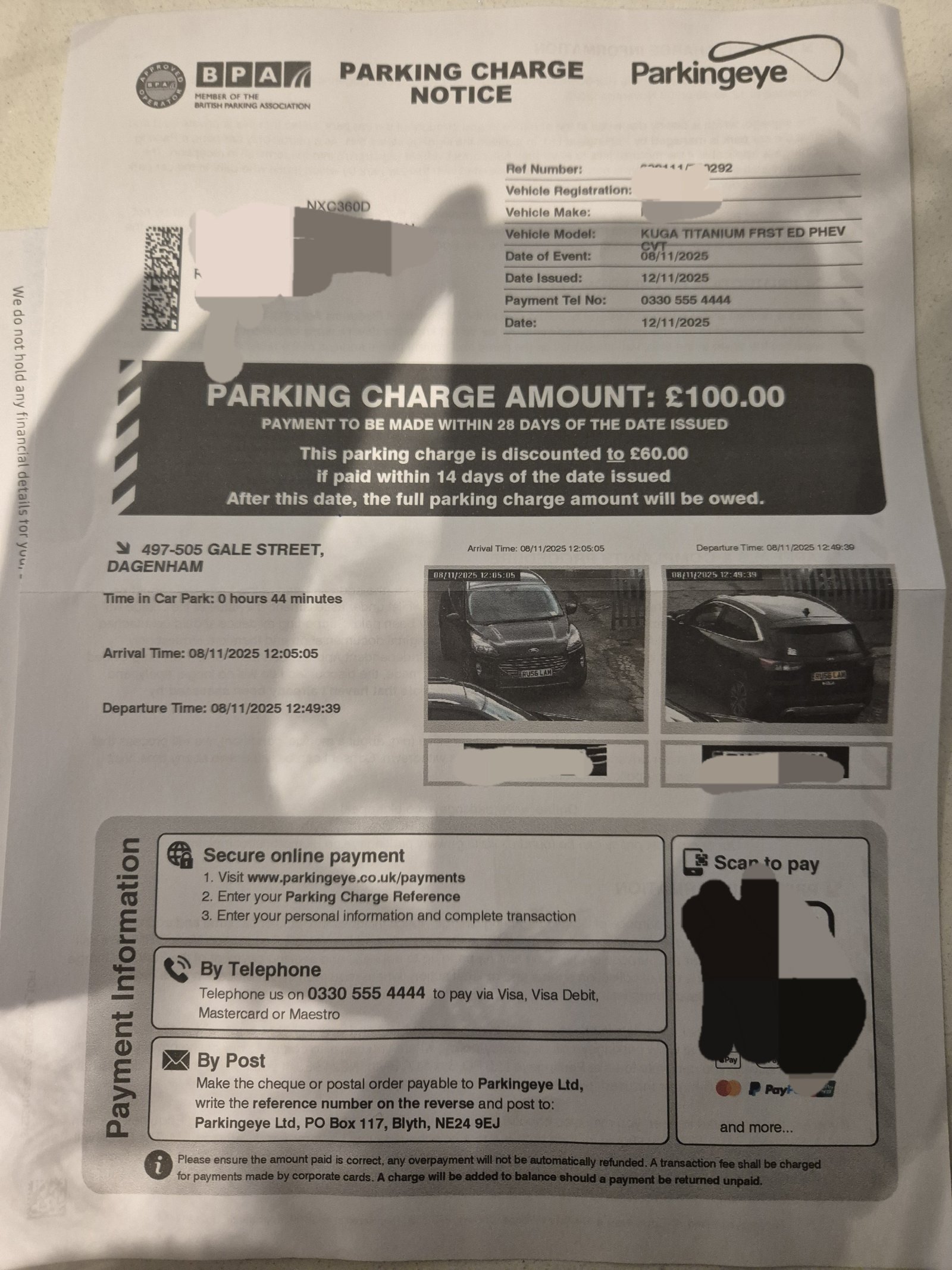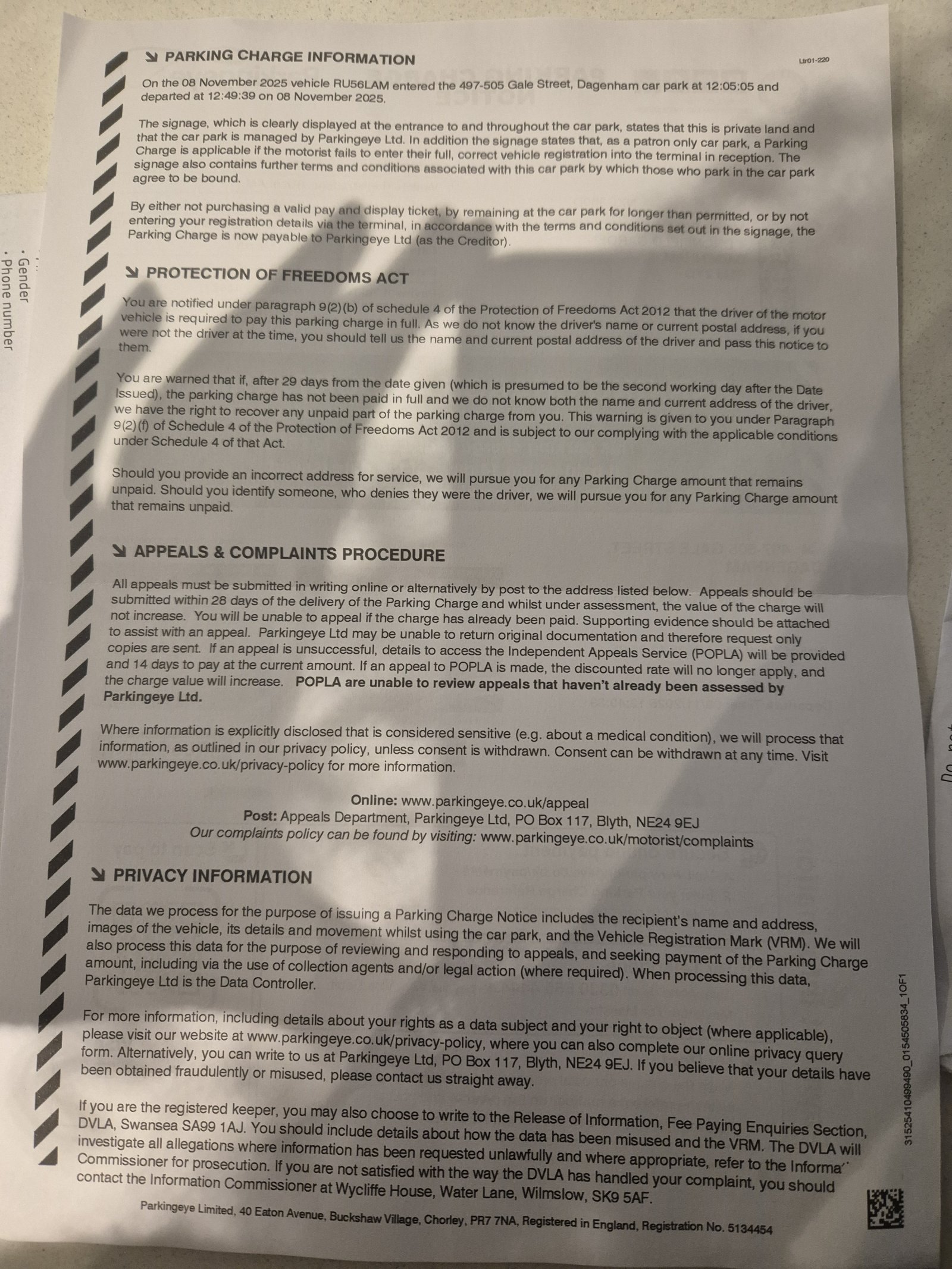 Could be that PEye are not up to date with all the businesses there? Complaint to the actual landowner/agent who runs the site, if so.PRIVATE 'PCN'? DON'T PAY BUT DON'T IGNORE IT (except N.Ireland).