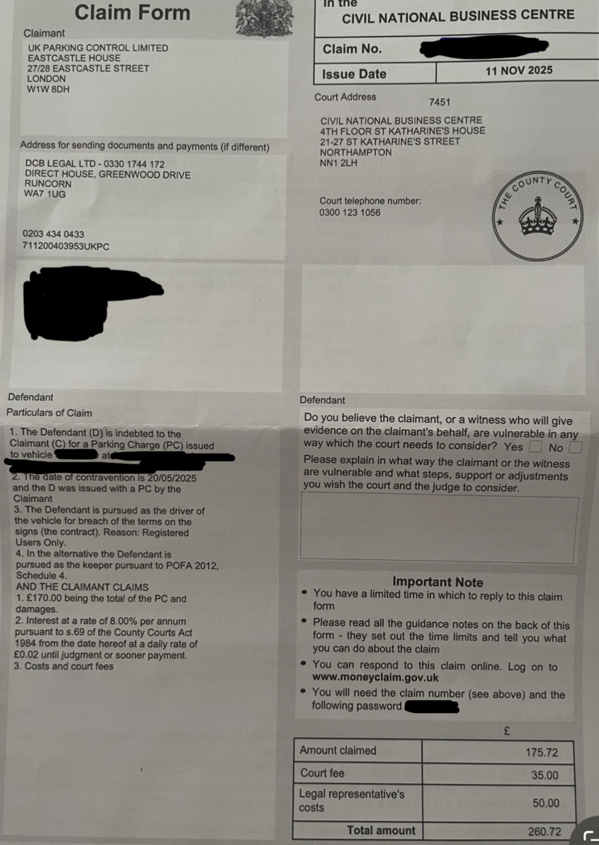 I have received a court claim regarding a parking charge from DCB Legal (on behalf of UKPC) please see attached below - I would appreciate some guidance regarding the particulars of claim and the best defence in this case.