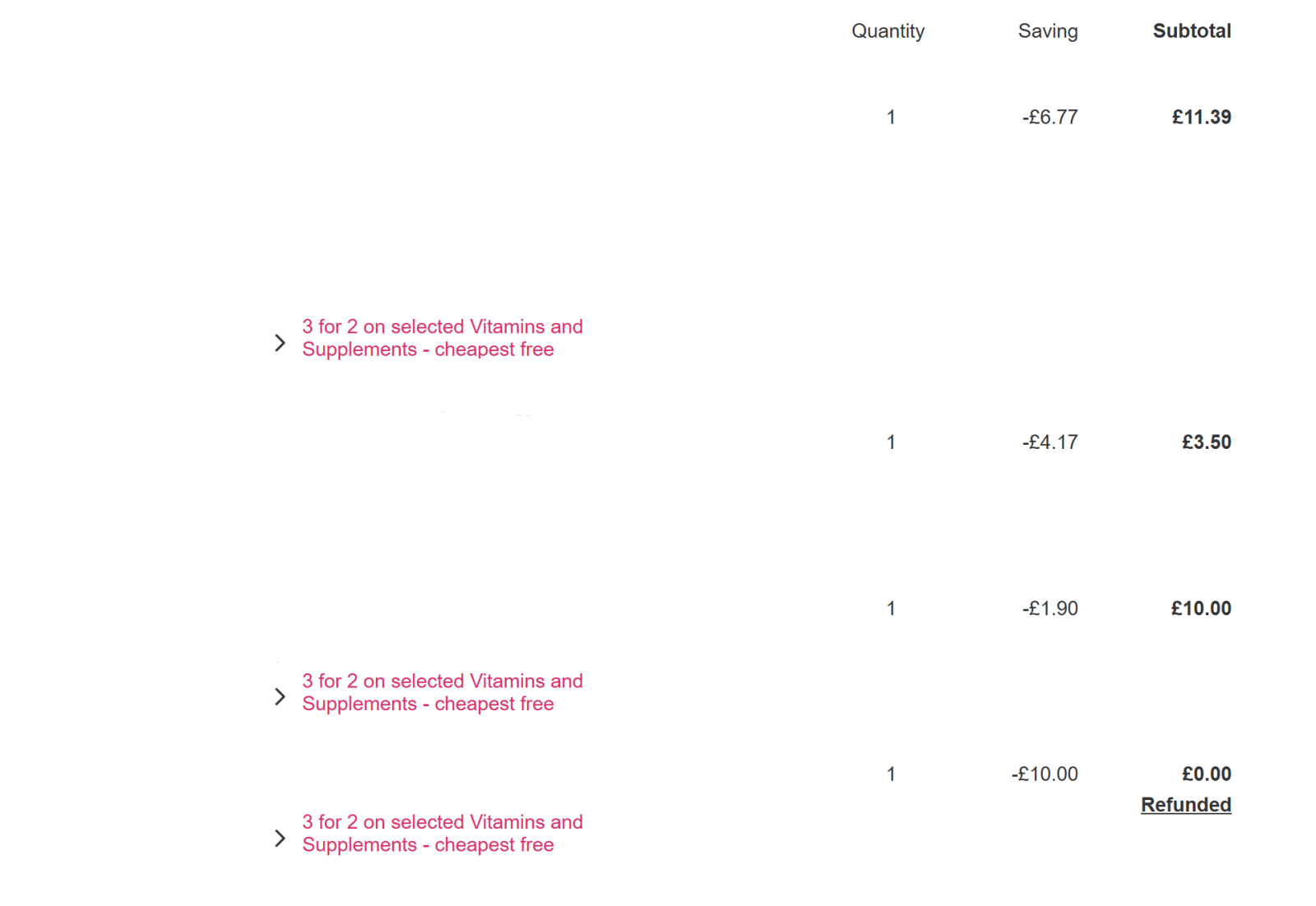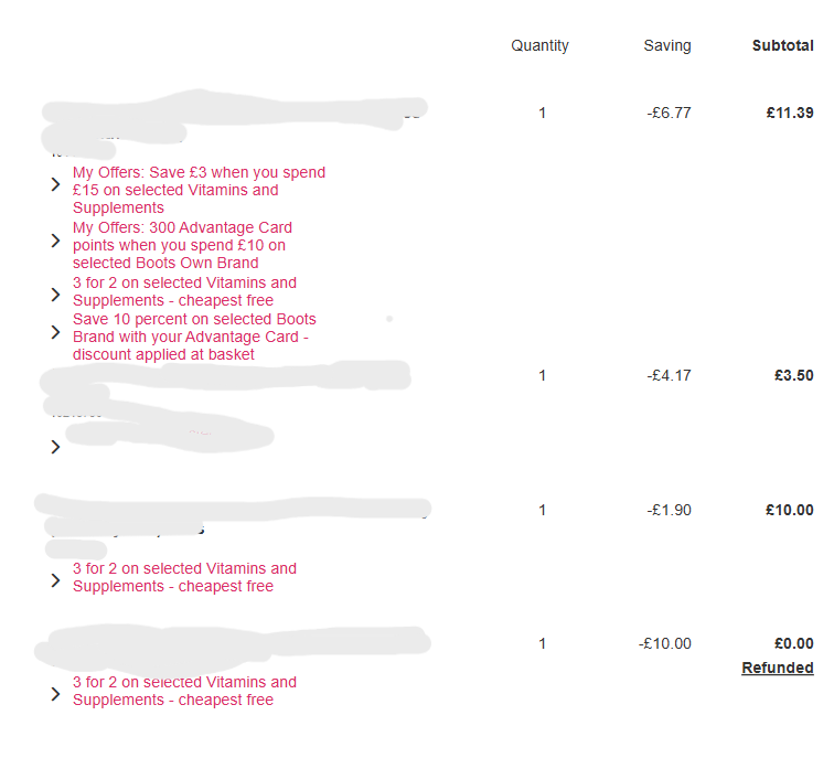 Earlier this year, i tried to refund an item from the 3 for 2 offer. The cashier was young and seemed new but she said she processed the refund and the manager did come to check the product. However, since it’s part of the 3 for 2 i was refunded £0 instead of £10 despite it being one of the more expensive of the 3. Wasn’t told this when returning. In hindsight i should’ve got a receipt or returned it all together perhaps.Now, i didn’t collect an order in time and they didnt even return an item that was part of the order! So i’ve lost £16.50.
