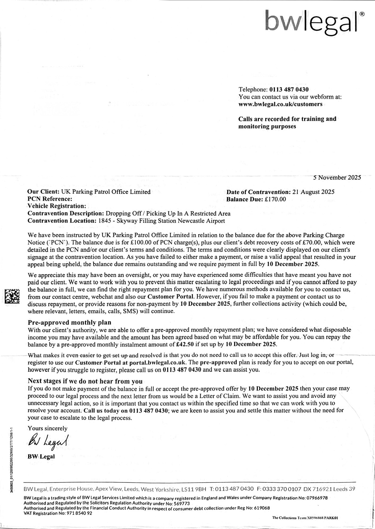 Debt Recovery Demand from BWLegal - No PCN ever received from Newcastle Aiport, Petrol Station