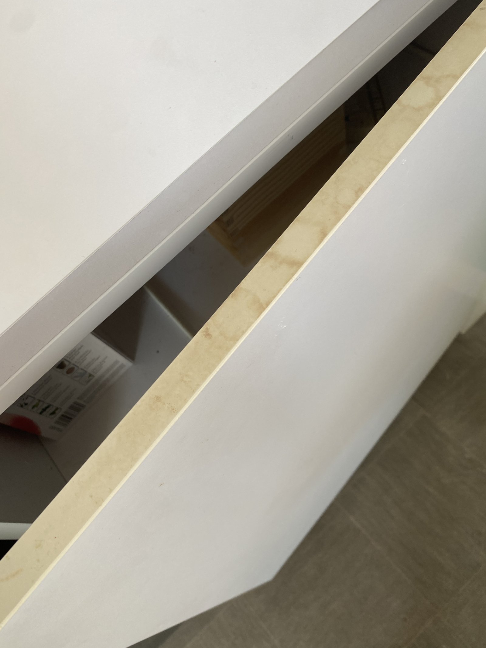 Dear all, just looking for some advice. I had a bespoke expensive kitchen installed 10 years ago (total cost around £30k but that included building works) . In the last few years the edges of EVERY cupboard/drawer have irregularly discoloured as per the pictures. At first I thought they needed a good scrub but nothing would remove the colour. I eventually got the company round and they took pictures etc, agreed it was strange and said they’d go to the manufacturer (Rotpunkt) to see what they would say. I must add that the lady who came round, the director, has the same kitchen as me and this has not happened to her kitchen. Eventually the manufacturer offered me replacement panels at €50 per panel and they stated that their product is not at fault and it must be my environment. (No smokers in the house). I calculated there are around 30-40 panels and was expecting a quote of €1500-2000 which I would begrudgingly pay however the quote has come back at nearly 4k, I suppose they are adding installation costs etc.