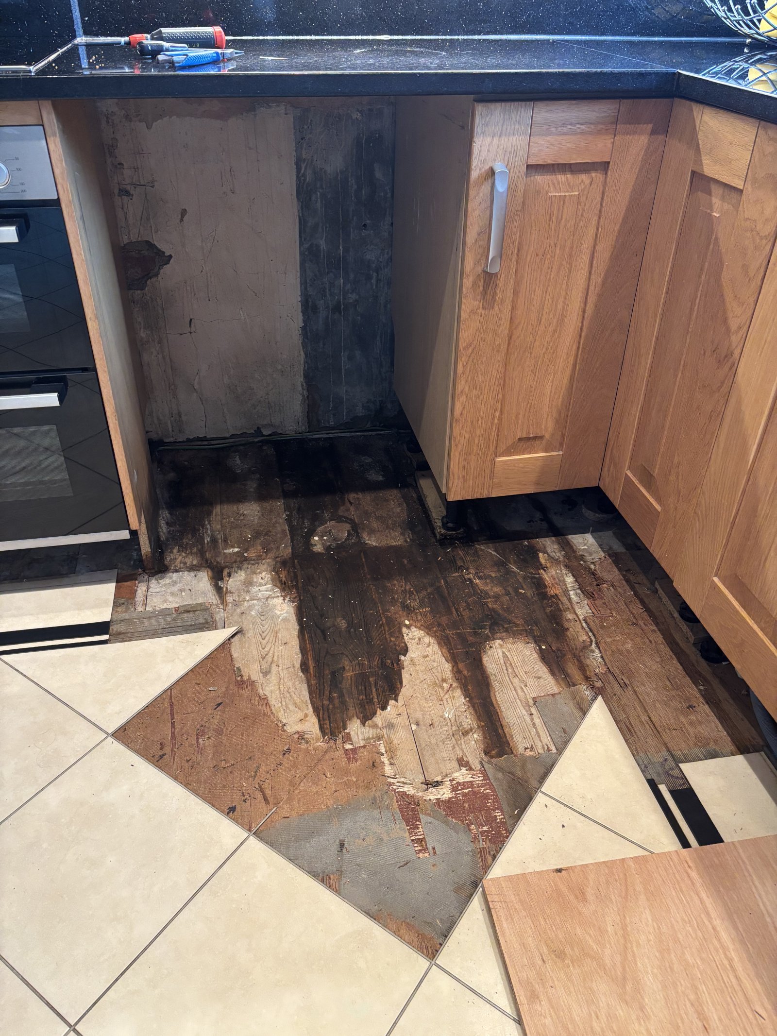 Washing machine packed up. John Lewis came to install new one. When they pulled the old one out the floor under was soaking. We have had a leak from our stop !!!!!! which had obviously been going on for a long time.