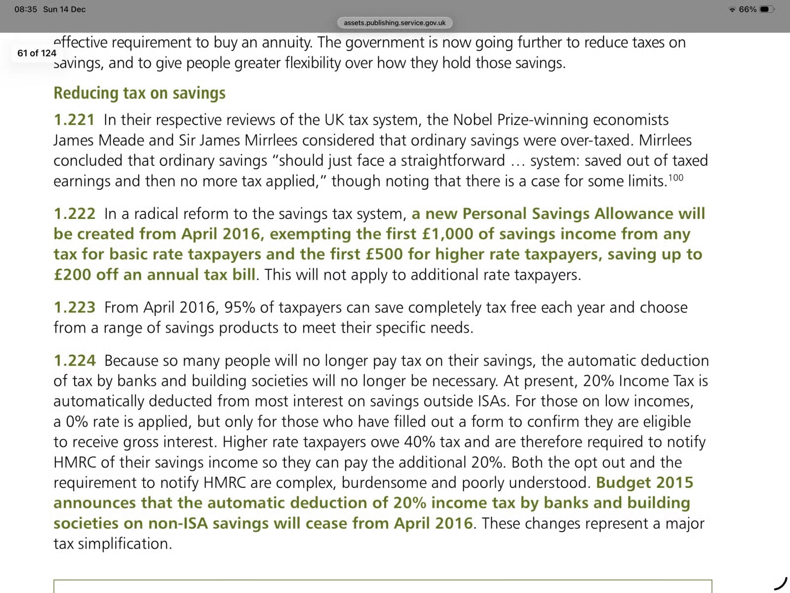 It made sense when interest rates were around 1%. A very small number of basic rate taxpayers held close to £100k in cash outside of an ISA. Higher rate taxpayers always had extra to pay.mills112 said: