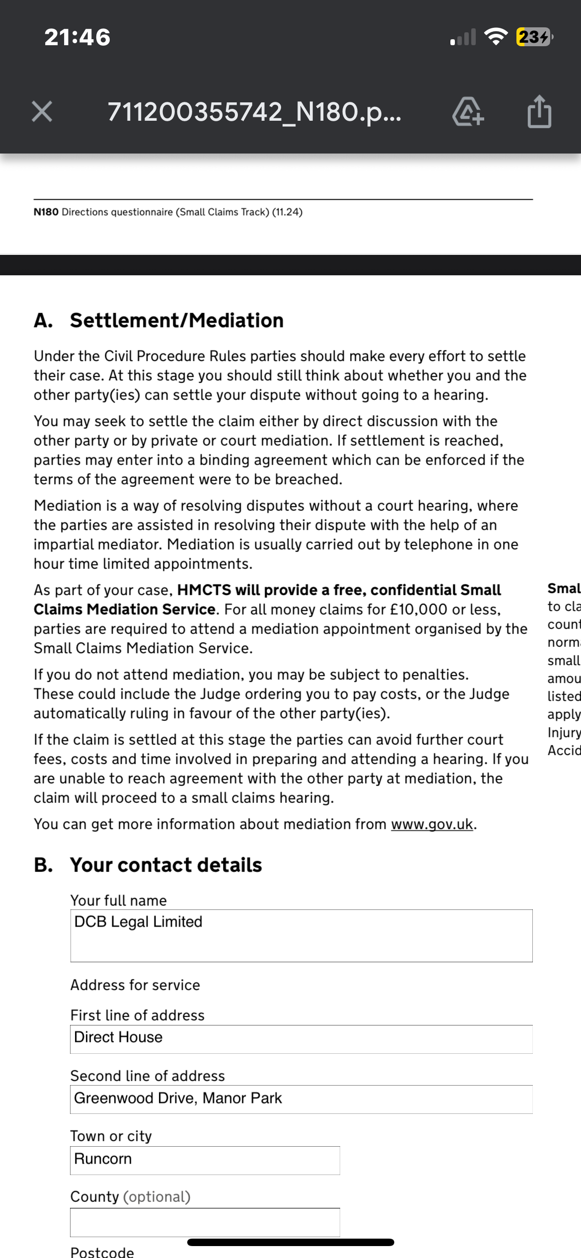 DCB Legal ‘mediation’ question [time sensitive]