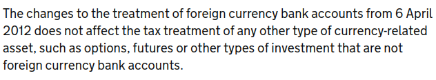 masonic said:itwasntme001 said:Then I am even more confused because I thought we were only talking about gains/losses when converting back already converted currency? So GBP to USD and then later USD to GBP, with the net gain or loss.Now you are saying for just one conversion I need to look at whether it was favourable to me or not vs. spot rate, which it definately is not.So there are two ways that CGT might be applicable for FX?