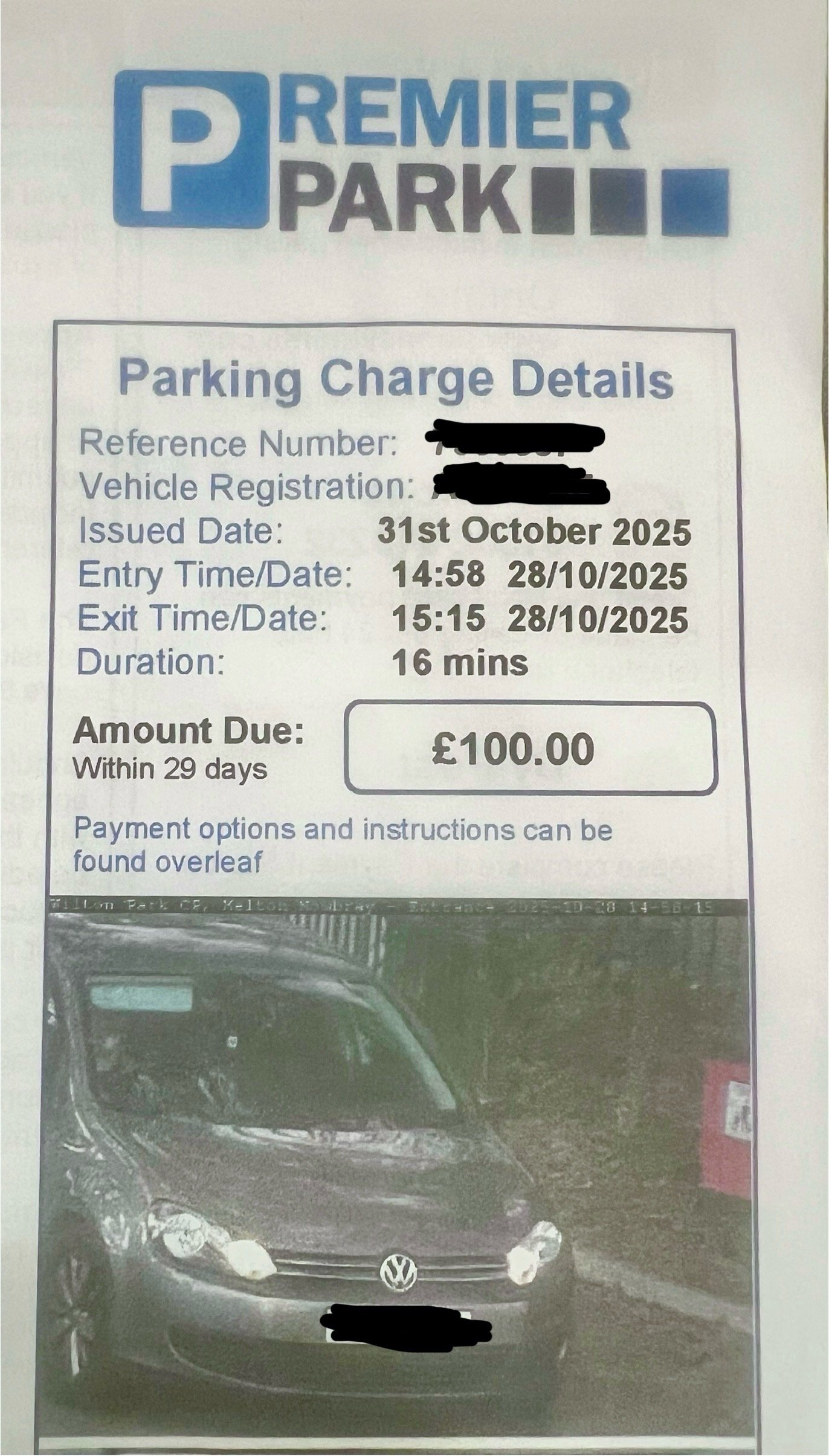 I feel that I probably have no leg to stand on, but £100 for 16 minutes? When I’m disabled and on benefits. Struggling to live. When I never even got out the car?