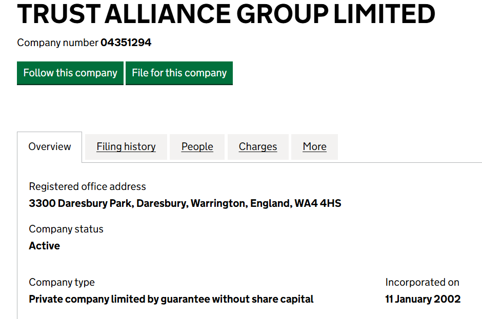 You are right. The Companies House listing is accurate. Trust Alliance Group Ltd is a company limited by guarantee, not by shares. Thank you for catching that — it’s a critical detail when benchmarking corporate structures in this industry.