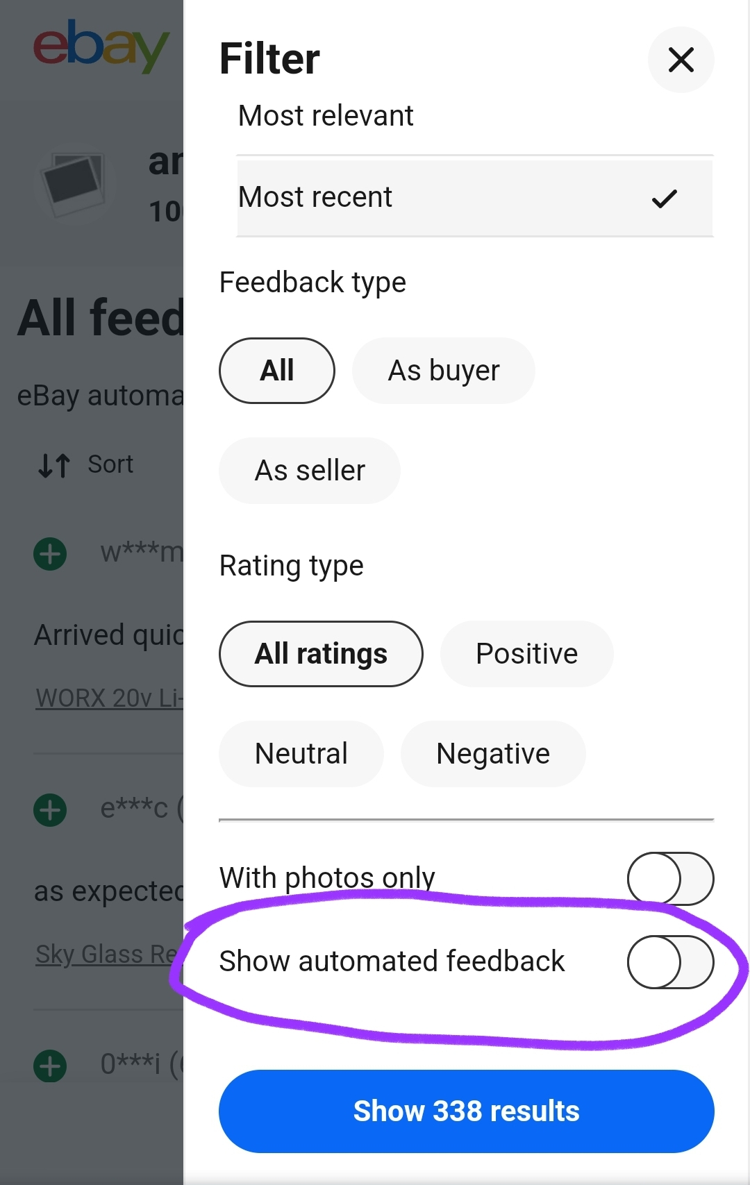 Once Ebay leave feedback, you can still leave feedback yourself and that will override anything Ebay have left.NotArobot24 said:Yeh that is in the image I posted but for me it is not about filtering it, it is about them doing it on the transactions I chose not to leave feedback on as if I had left positive feeback. It distorts feedback even more than existing policies and I agree with the ICO that it is fraud.