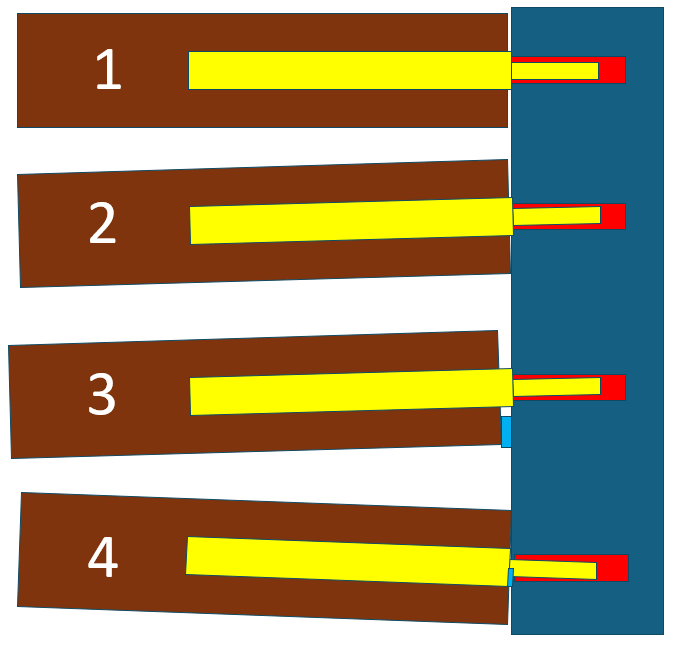 I feel that the rawl plugs being plastic (red) are deforming when weight is placed on the rods (yellow) as shown in "2". How much length of threaded screw is provided for screwing into the wall?
