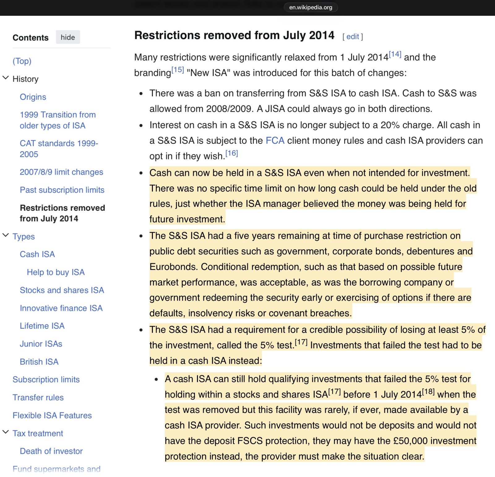 https://en.wikipedia.org/wiki/Individual_savings_account#:~:text=Cash%20can%20now%20be%20held,must%20make%20the%20situation%20clear.