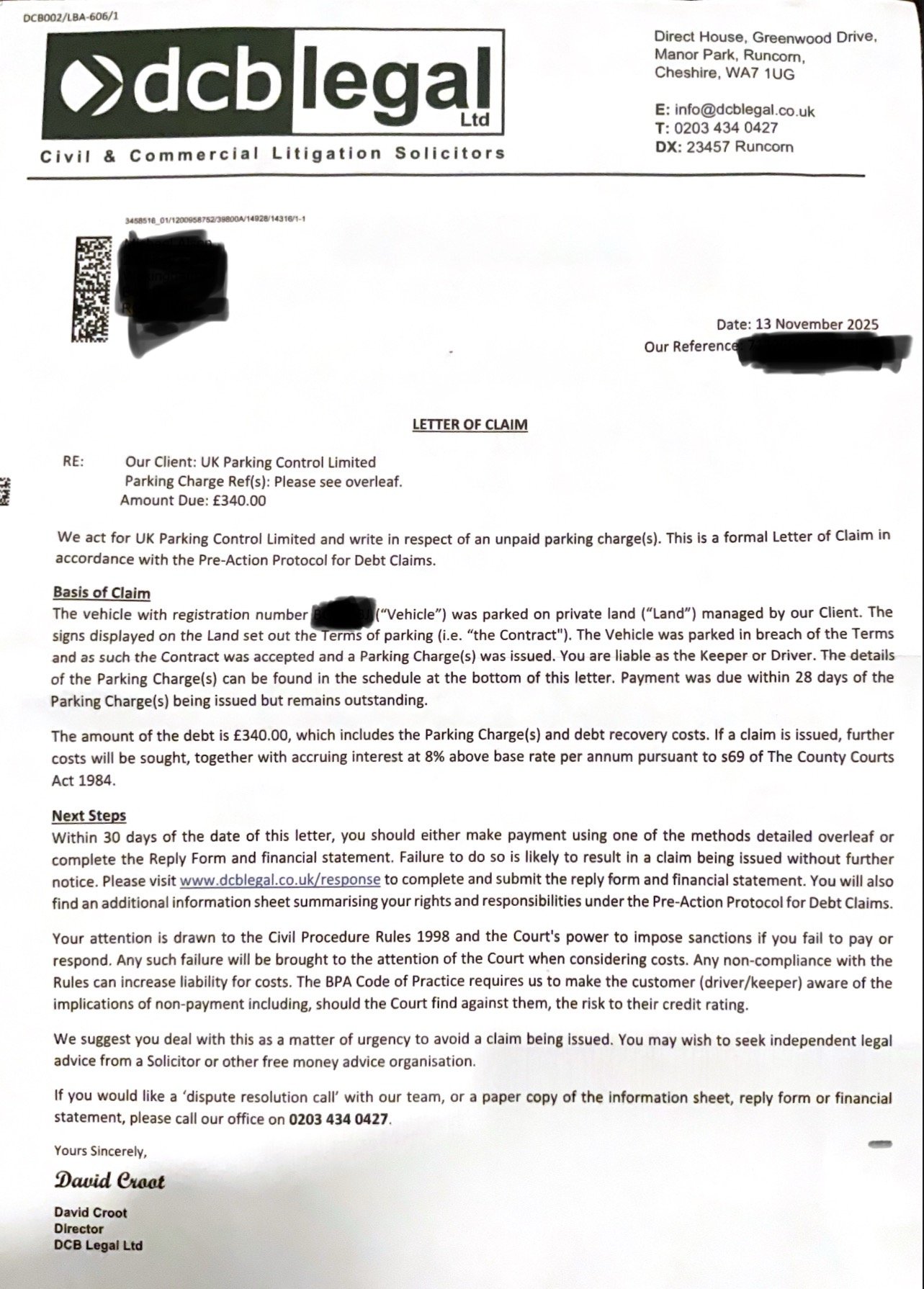 Advise on how to deal with 2 PCN’s from UK PC - Letter of Claim Received from DCB Legal