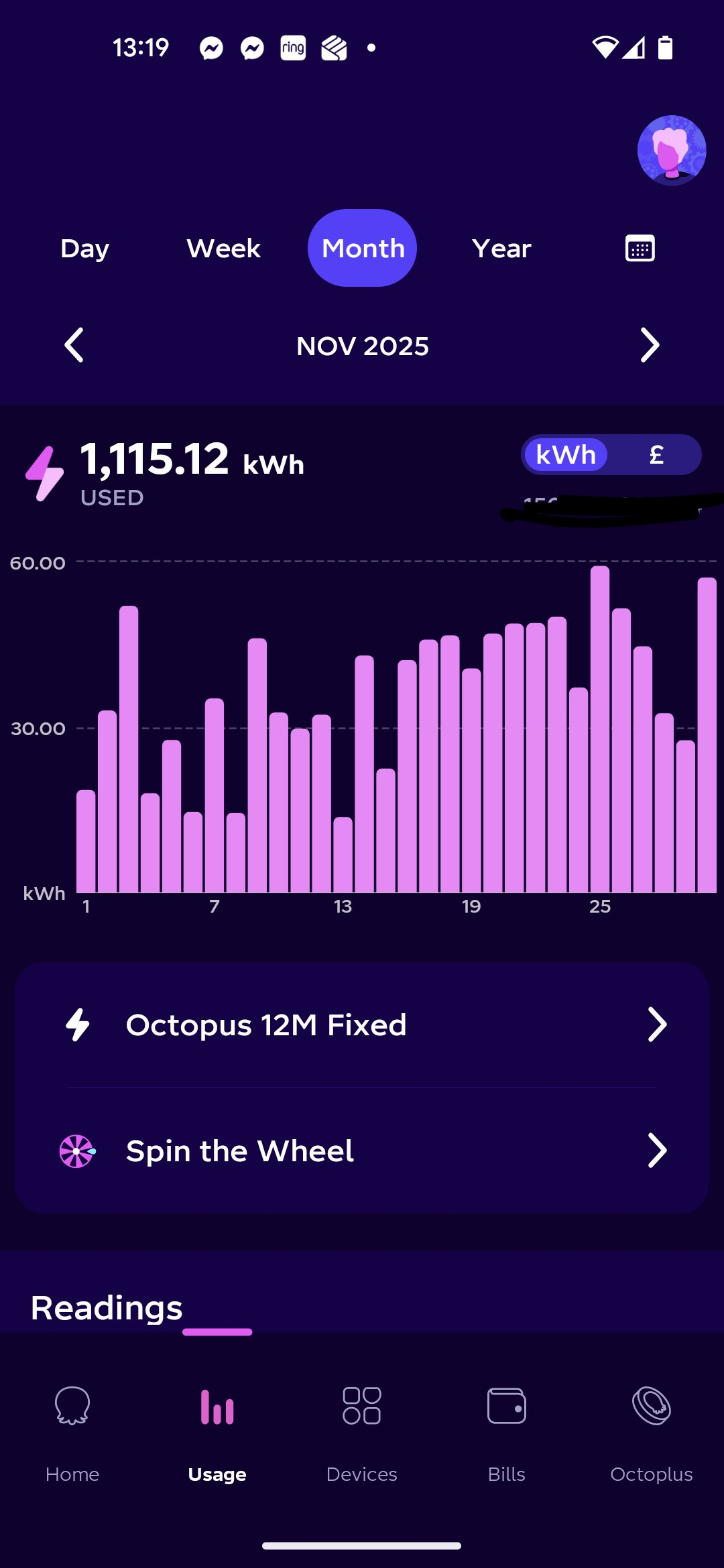 I am in a two bed flat, middle floor corner so exposed on two sides, EPC C, no storage heaters but rarely need heating. £89 or 625kWh on November, water heated overnight for an average of nine showers a week, dishwasher and laundry mostly run overnight, and 1,040 miles in my EV that month as well on IOG so 7p night rate.