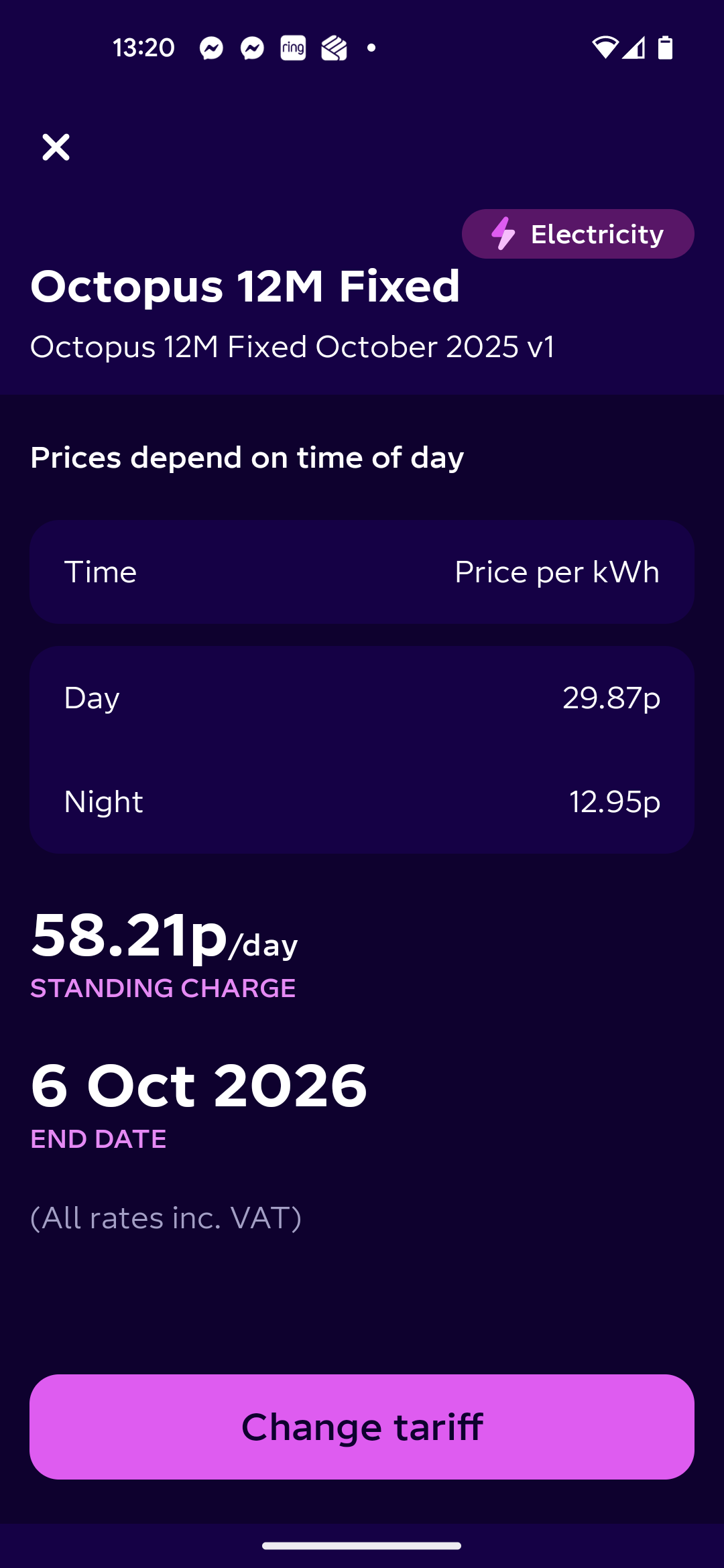 No gas also means £200ish less a year on standing charges..The 6.6p/kWh rate is great but the 30.83p/kWh rate from 0500 to midnight is a bit on the high sideHowever, the OP would be able to switch to a cheaper Good Energy tariff in the summer with no exit fee.1 -