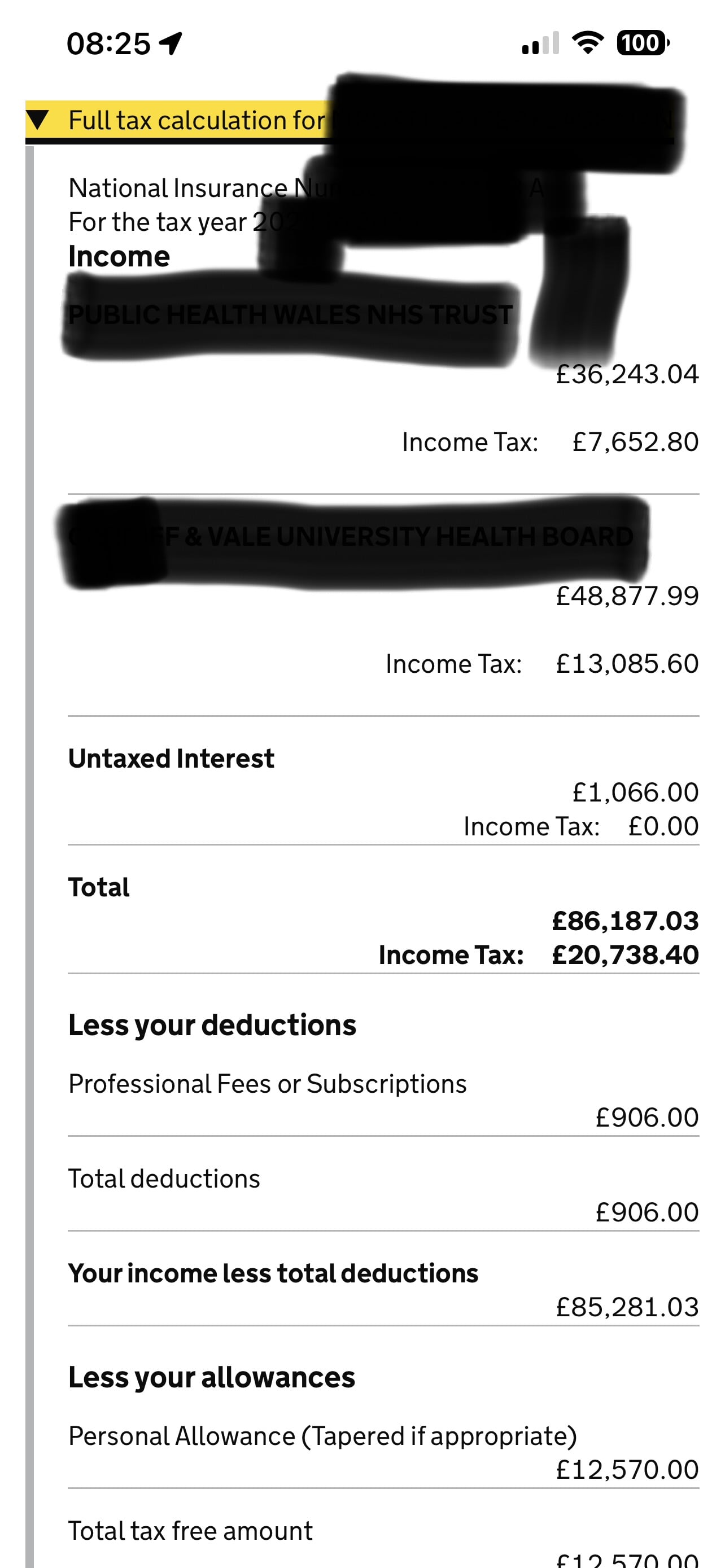 To get to the bottom of this we would need to establish what your total income is and what allowances you had. We can then rework the above calculation with the actual numbers. The screenshots you posted earlier show most of the info. but there would be a bit of info. above this that shows all the income and the allowance used.