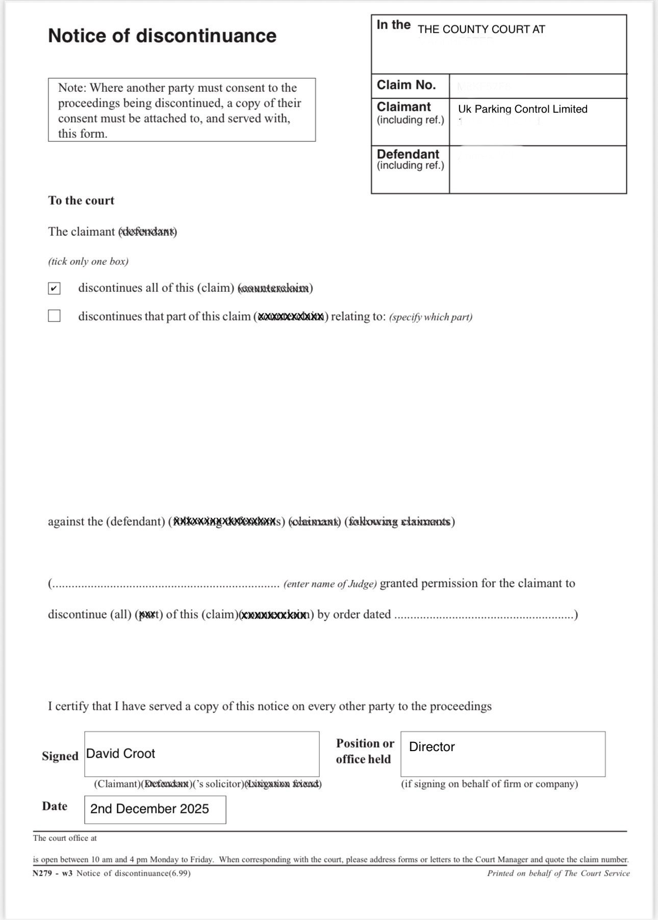 Yesterday I received a Notice of Discontinuance by email. I was quite relieved but in a similar vain I was slightly aggrieved also given that I wasn’t allowed to test their case and lack of evidence in Court.