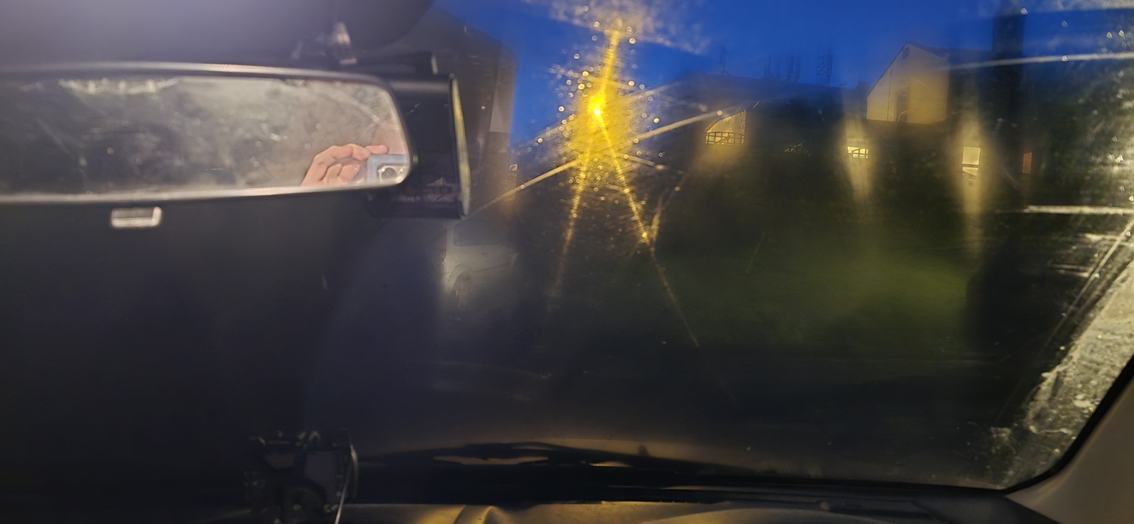 Just adding another image unfortunately it's dark out. But the camera is tucked behind the rear view mirror. My original photos are in wide angle.