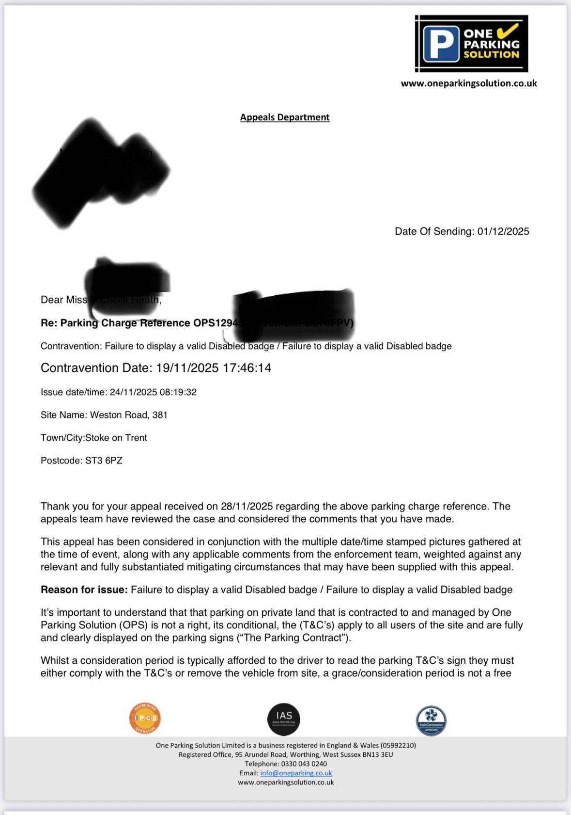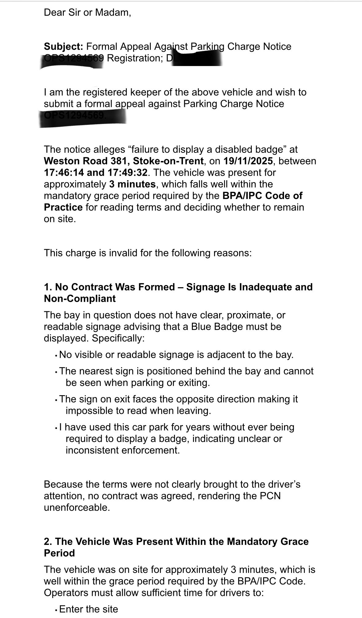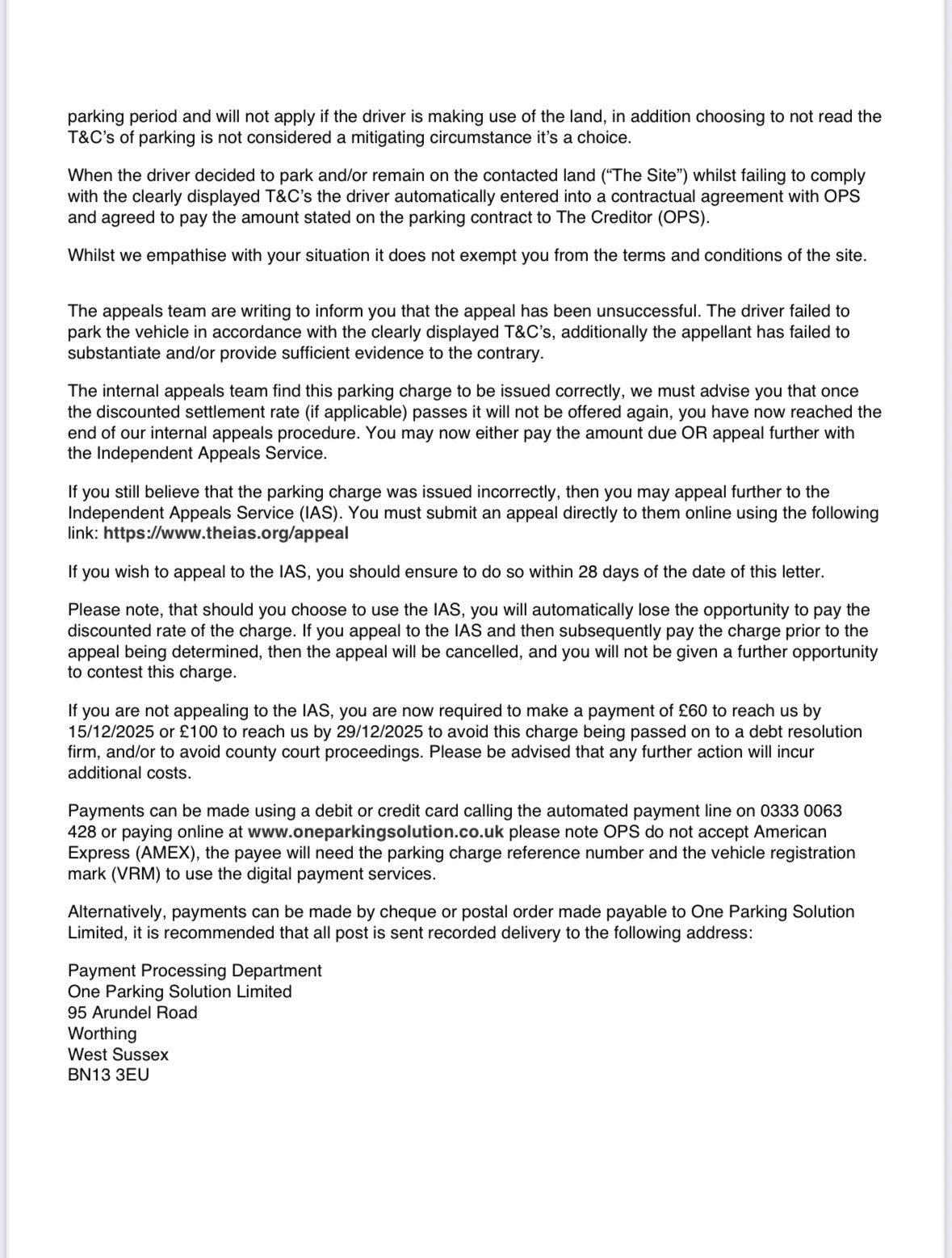 A couple of weeks ago I nipped into my local post office and forgot to put my badge in the window. I have been using this shop for years and forgot to do this many times but on this occasion I’ve had a parking charge £100. The shops recently been taken over by someone new and been refurbished which is why I’m guessing the recent fine after never having one before. I have appealed it on the basis that there’s no signage around the bays saying you have to display your badge and also the sign coming into the car park is facing the traffic coming in from the southly direction and not the north, the only other sign is on exiting the car park which is again faced away from the bay where I parked. The appeal rejection has told me to escalate to IAS but after reading this forum it seems thats pretty useless. Should I just wait it out now and see if they take me to court? Thanks
