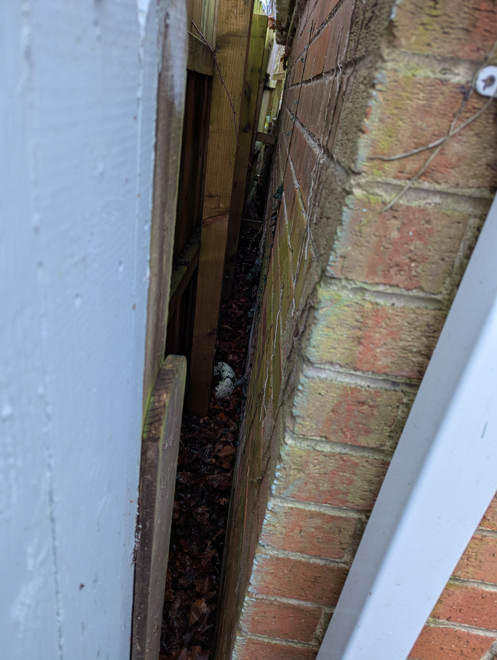 As Stuart has pointed out, it's worth starting with a good clean-out of that gap. You may need to cobble up a suitable tool like a long and narrow hoe, and scrape away.