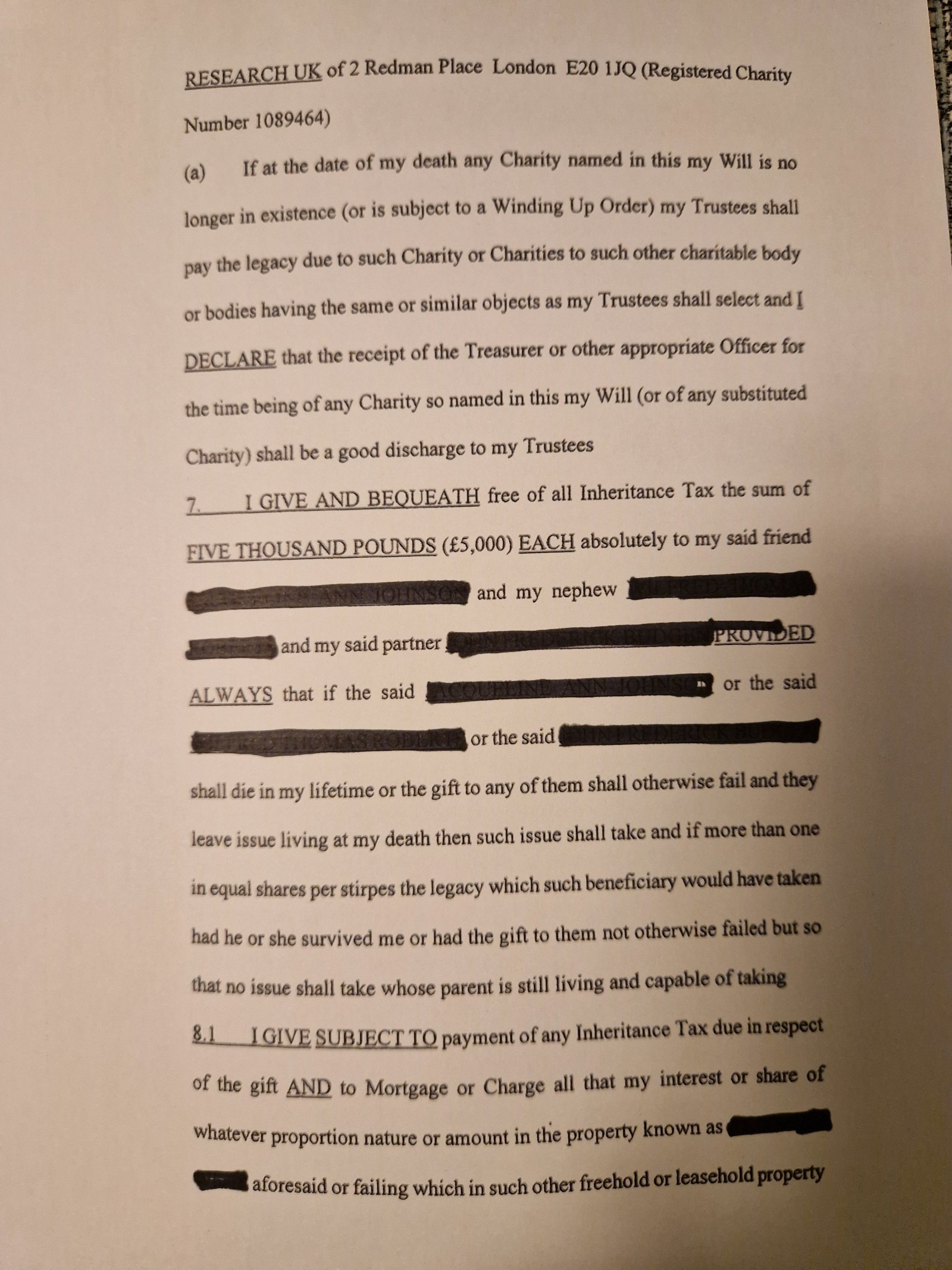 One more question, do those cash bequests say anything about being free of IHT?0 -