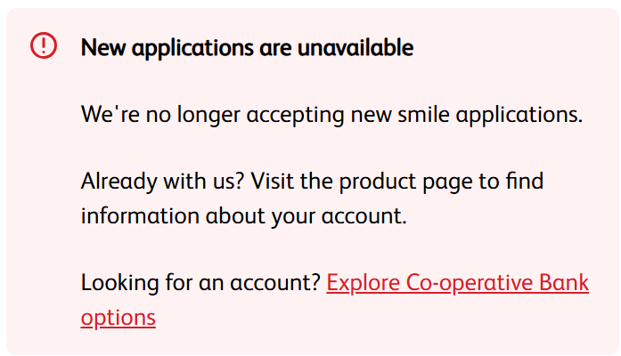 Everything is still fully operational for current customers and I imagine during 2026 customers will just be seemlessly migrated to Co-operative branding, retaining all the same account details (online experiences are pretty identical now, and the automated telephone service has always automatically listed both smile and co-op accounts when a customer calls in). For many years, new account promotions have excluded smile accounts.