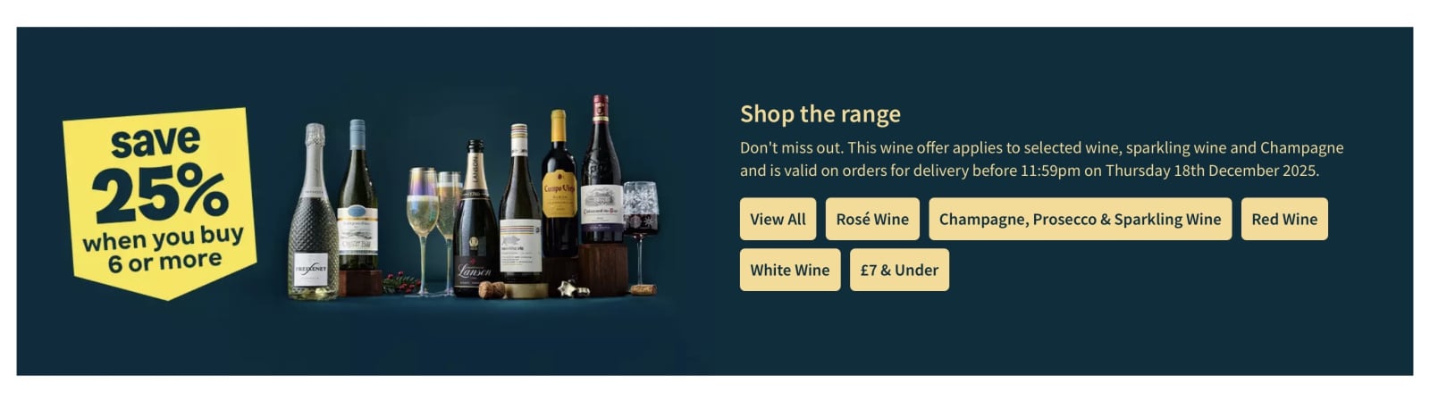 So if you ordered 6 bottles if wine to save 25% for delivery on 19th December - you would lose out as it clearly states delivery up to the 18th https://www.asda.com/groceries/event/wine-offers