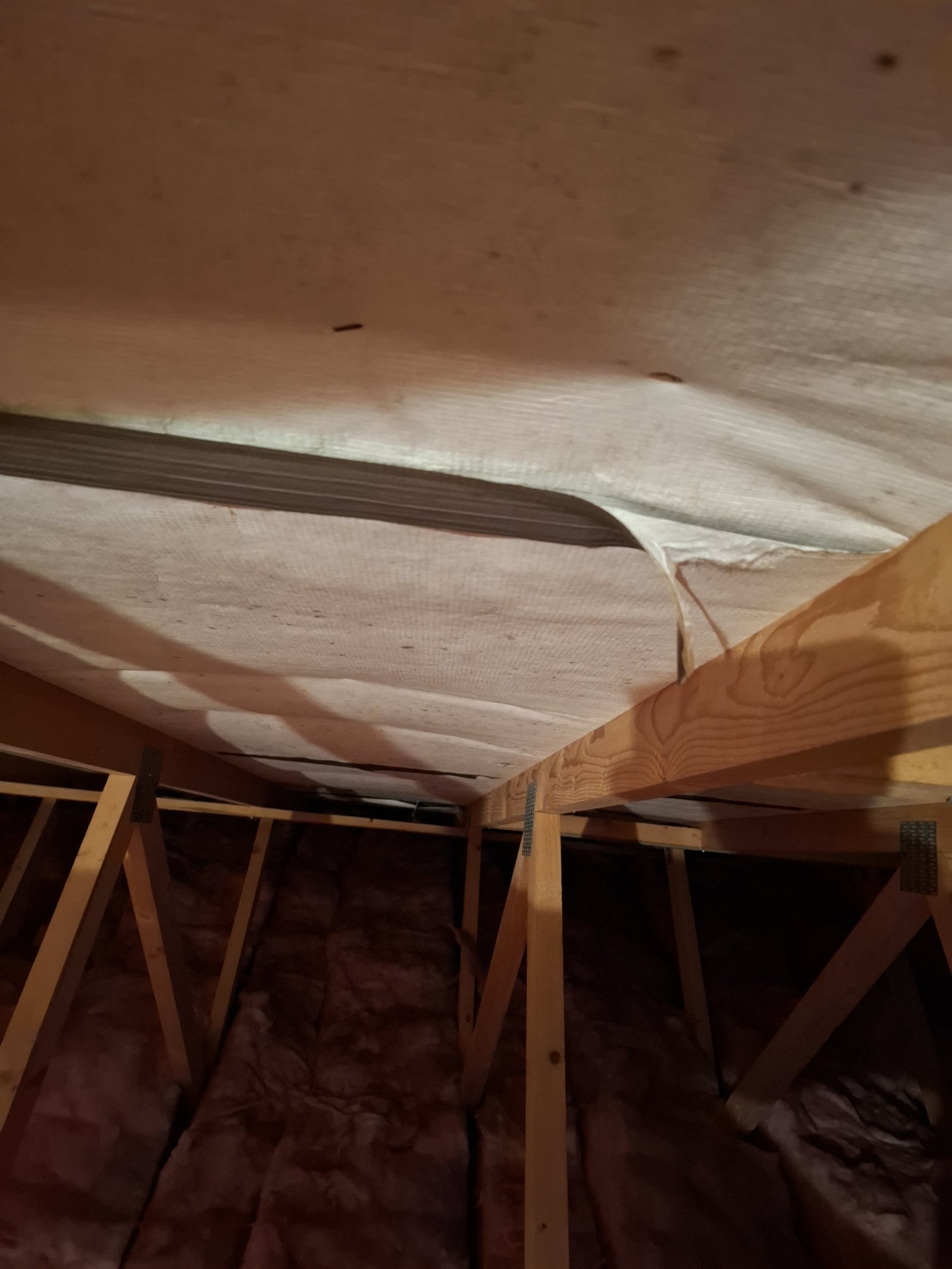 I've taken the tape off and installed a few felt lap vents just to aid ventilation up there. Will check things again in a few weeks. Seems a bit random that there was tape on one side of the loft but not the other. The tape on that one side did seem to have the effect of sealing it all up a bit too tightly.1