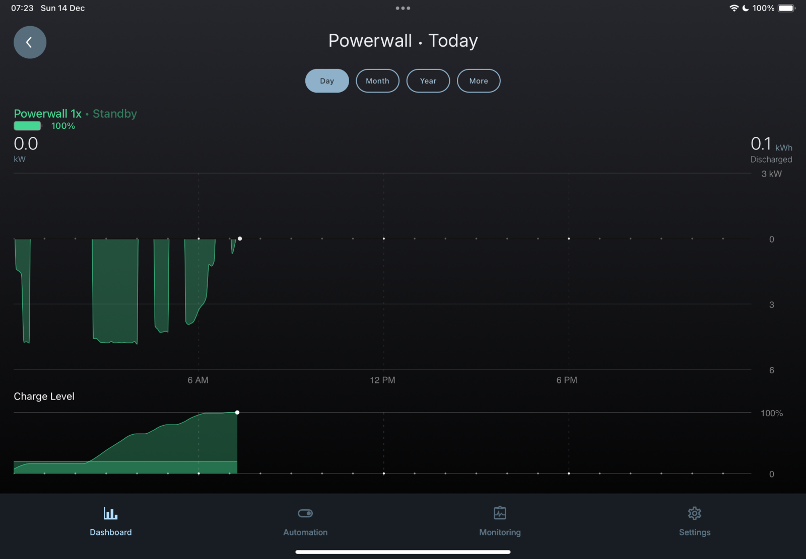 Update 7.45pm: We made it through to 7pm with 23%. The battery has continued discharging so at 7.30pm I dropped the reserve to 5% to make room for some cheap electricity tomorrow; if the PW3 deems it worthwhile.The battery discharged down to 5% at around 10pm last night and this morning charged up to 100% using, it seems, the cheapest time slots. I couldn’t have done it better myself😄