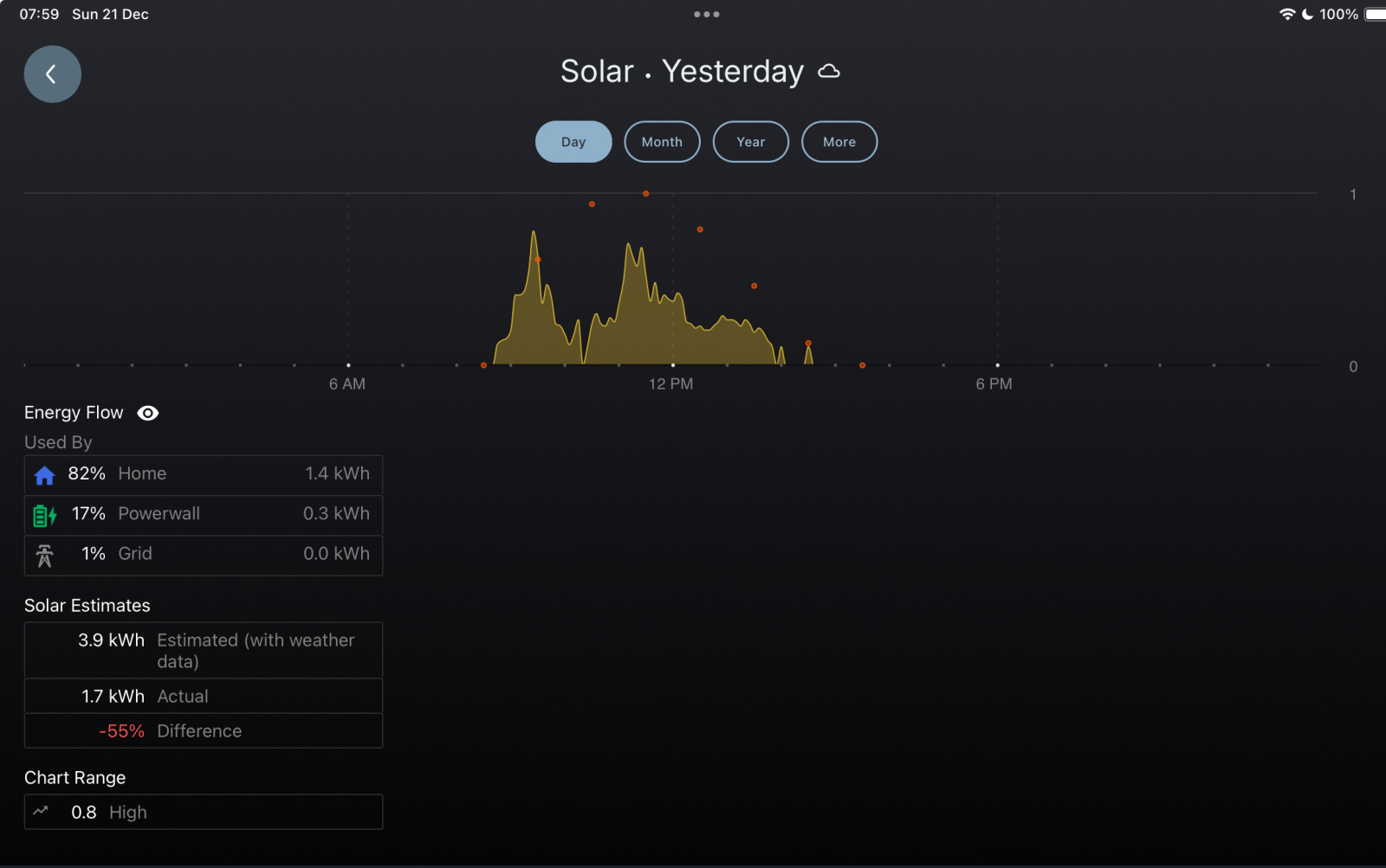I accept it’s early days at the moment but I don’t see me sticking with the NetZero app after my first month’s subscription expires and I am anticipating moving to Octopus Go (if I am allowed).Edit: I may be maligning the NetZero app as I don’t know if it does anything more than provide pricing data to the PW3 which may then make its own decisions about solar estimates or demand and charging management.Northern Lincolnshire. 7.8 kWp system, (4.2 kw west facing panels , 3.6 kw east facing), Solis inverters installed 2018, 5kWp S facing system (shaded in afternoon) added in 2025 with Tesla PW3 battery, Mitsubishi SRK35ZS-S and SRK20ZS-S Wall Mounted A2A Heat Pumps, ex Nissan Leaf owner.1 -