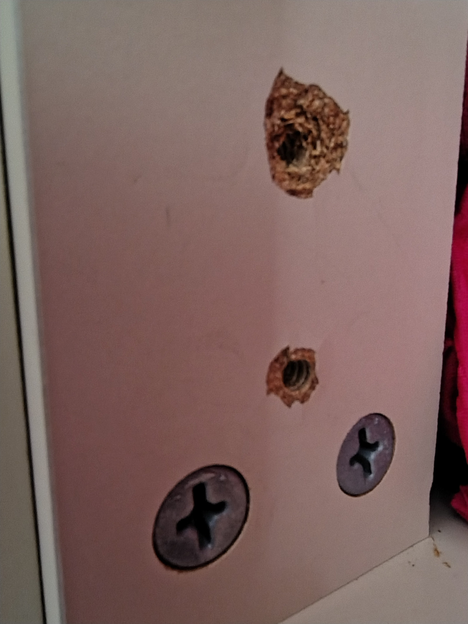 Most likely the holes are in the cabinet wall that can't be taken off.Heedtheadvice said:That's idea can very good with the door taken off and laid flat it can be filled with the runny epoxy resin 2 part to just about level so need no trimming. Just dril pilot hole when set.
