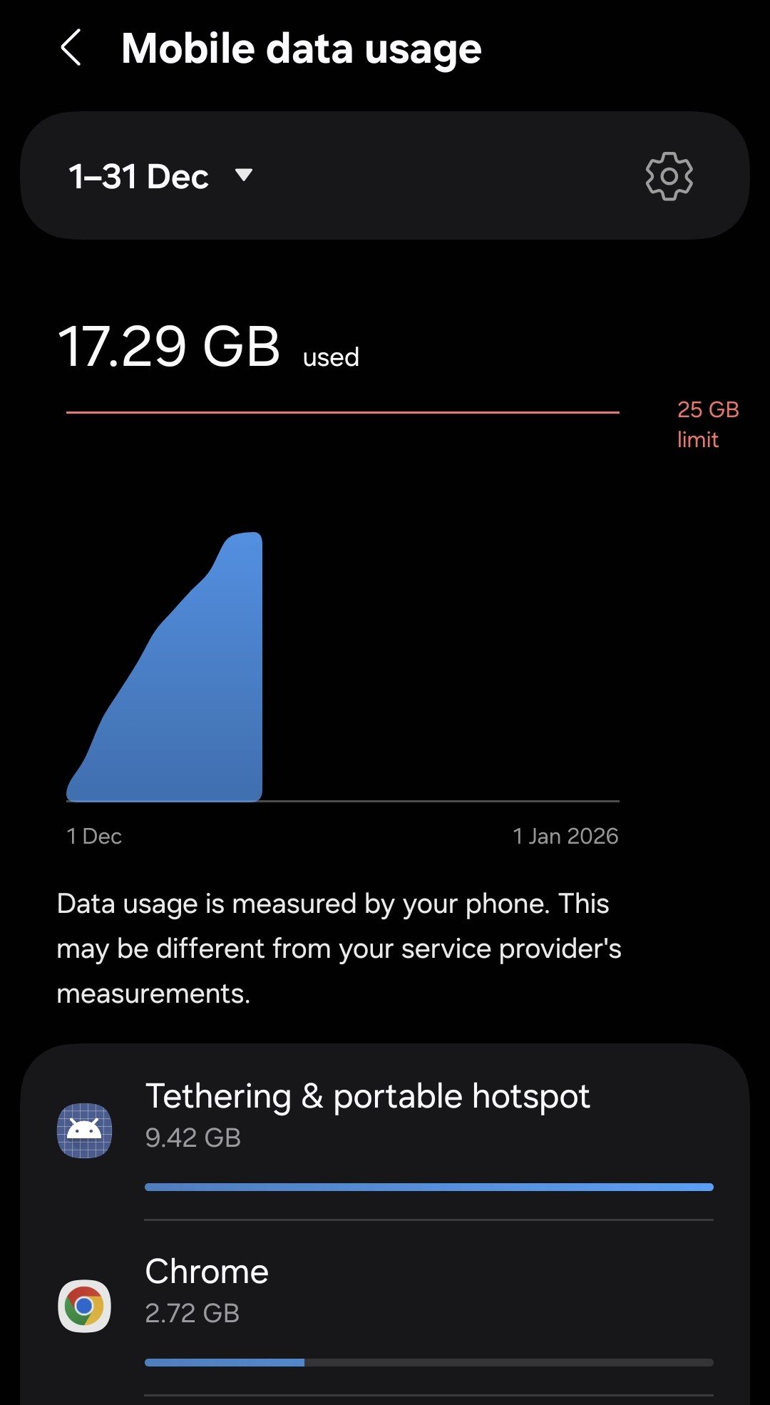 I asked him how much data I have used since 1st December and he said a lower MB amount. Almost noting.