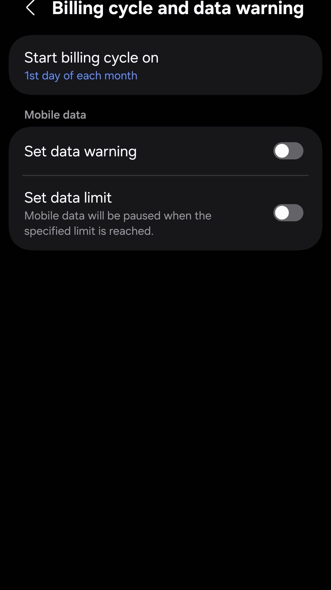 As for setting the data limit to 100GB, that will prevent the phone from warning or pausing the data connection, but what actual data allowance does the OP have?