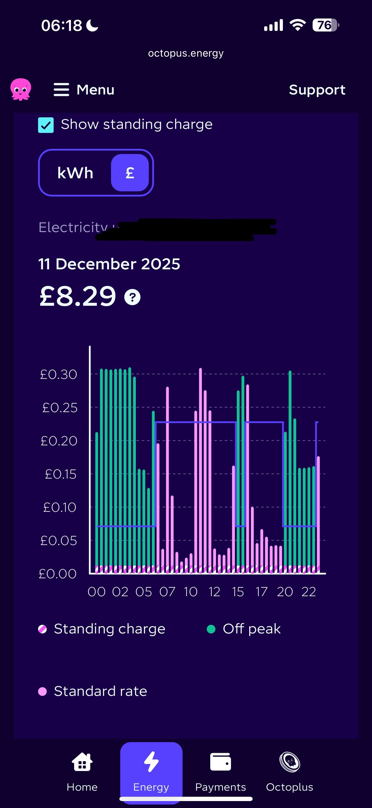 And thanks for the other days that also show more minor variations in tge pattern - again so as they are reassured dynamic is normal behaviour - like the change in 1130pm to midnight slot despite starting off peak at 11 - sometimes going back standard as app chart, sometimes not on bill details.