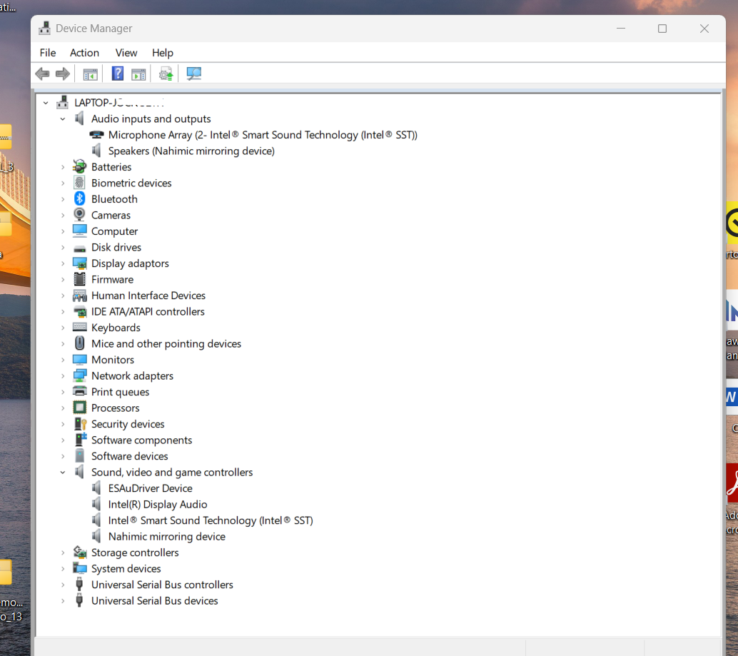 It says it is using the "Nahimic mirroring device" to play sound, and i can see that in the Device manager, and have gone "update drivers" but to no avail.