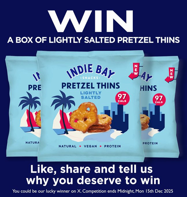 E: 15/12 WIN a box of Lightly Salted Indie Bay Pretzel Thins (X)