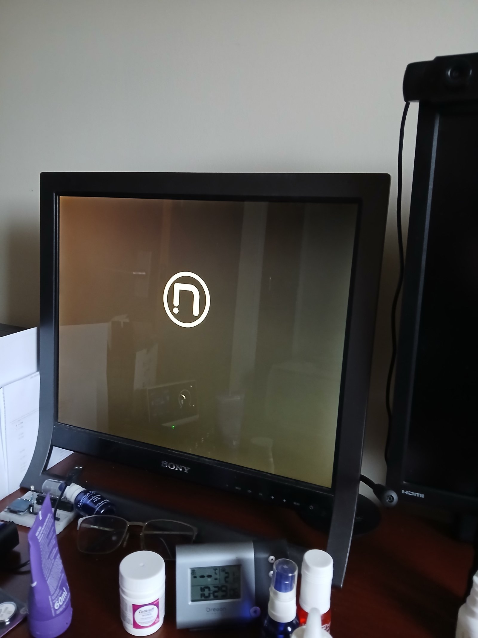 That looks like the BIOS splash screen.You didn't see it before because Windows was starting automatically when you turned the PC on and the monitor hadn't initialised in time to display that stage of boot.Now something has changed in your power-on settings, Windows doesn't start until you press the power button and the monitor is ready in time to show the BIOS splash.N. Hampshire, he/him. Octopus Intelligent Go elec & Tracker gas / Vodafone BB / iD mobile. Ripple Kirk Hill Coop member.Ofgem cap table, Ofgem cap explainer. Economy 7 cap explainer. Gas vs E7 vs peak elec heating costs, Best kettle!