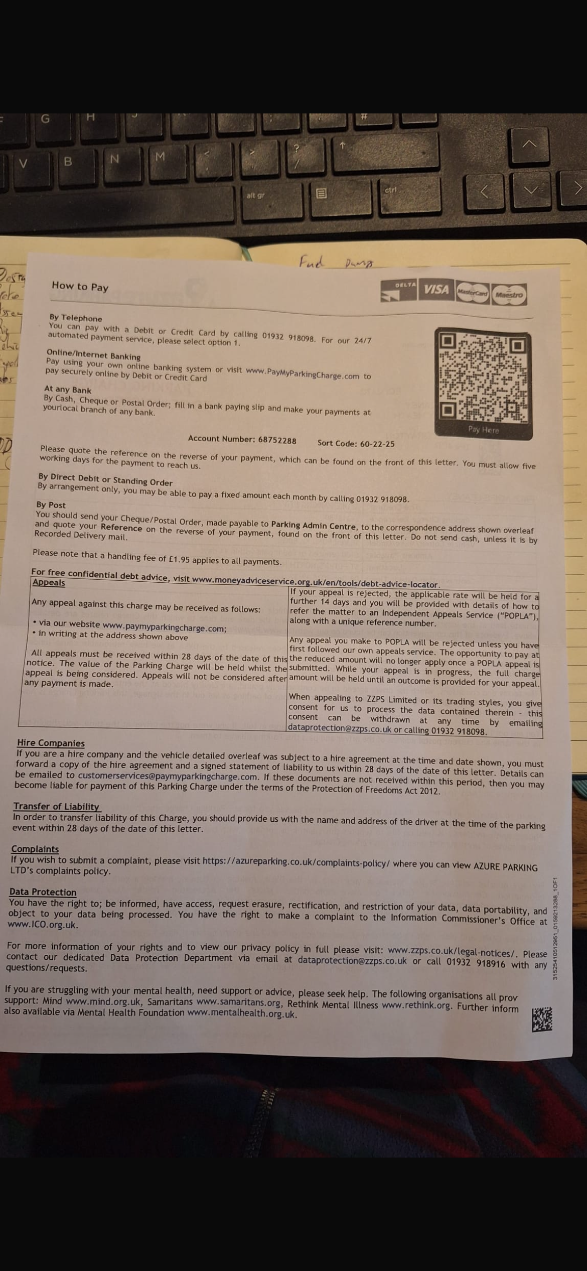 LOL, it is almost a joke: Azure Parking use ZZPS to send their letters and our cases show they scam people left, right & centre.
