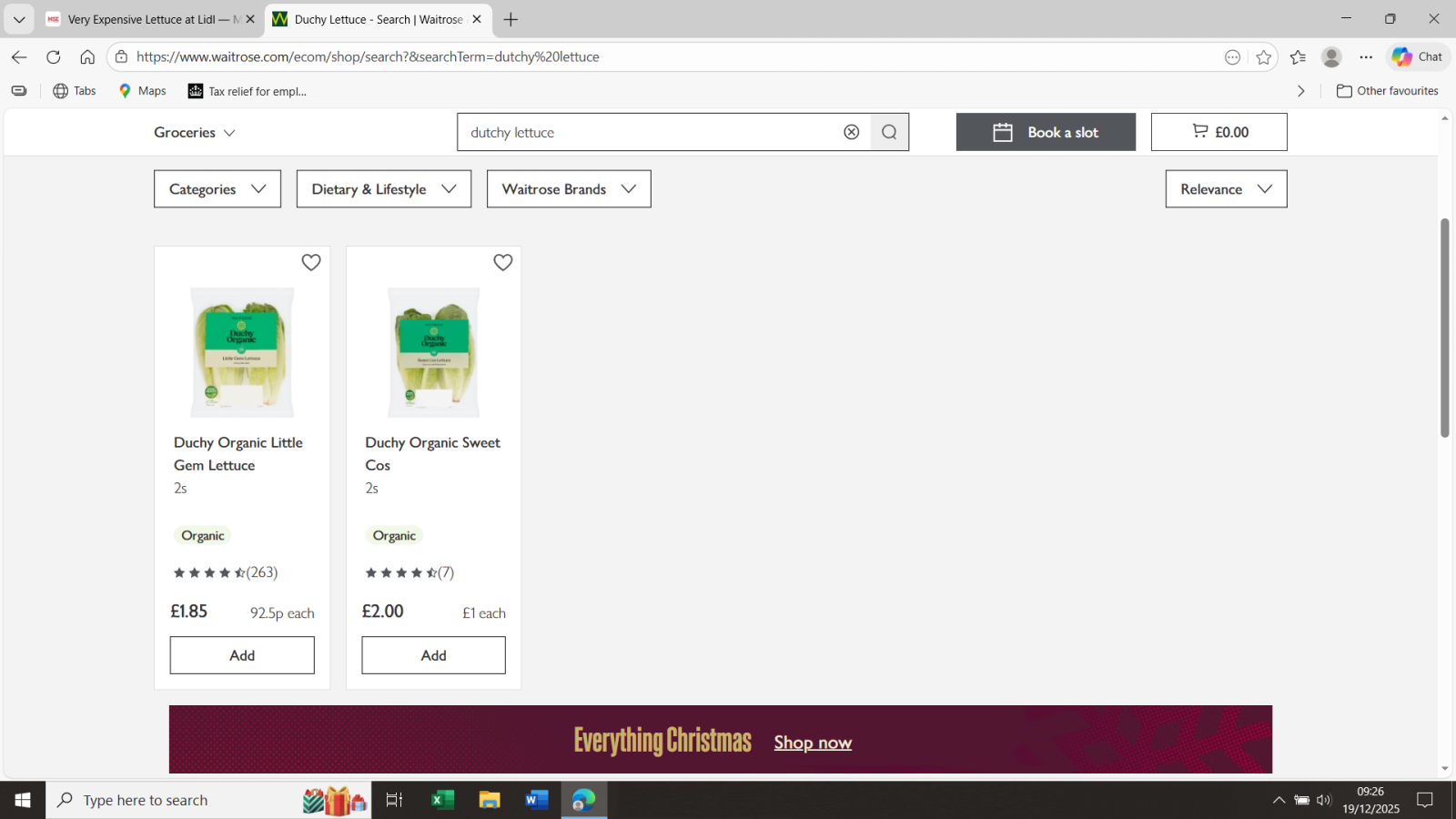 1 = See image attached (currently Dutchy Organic Lettuce prices as Waitrose)eschaton said: