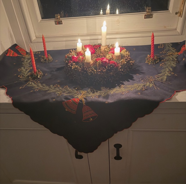 @taff - thanks for the song again.As for candle burning, if others are here then for a couple of hours. If on my own then a glass of wine time! As you can see they’re all at different heights as one lit on first advent, two on second etc only four lit on the advent before Christmas Day - tomorrow. It’s very German tradition, one which I enjoy following.9