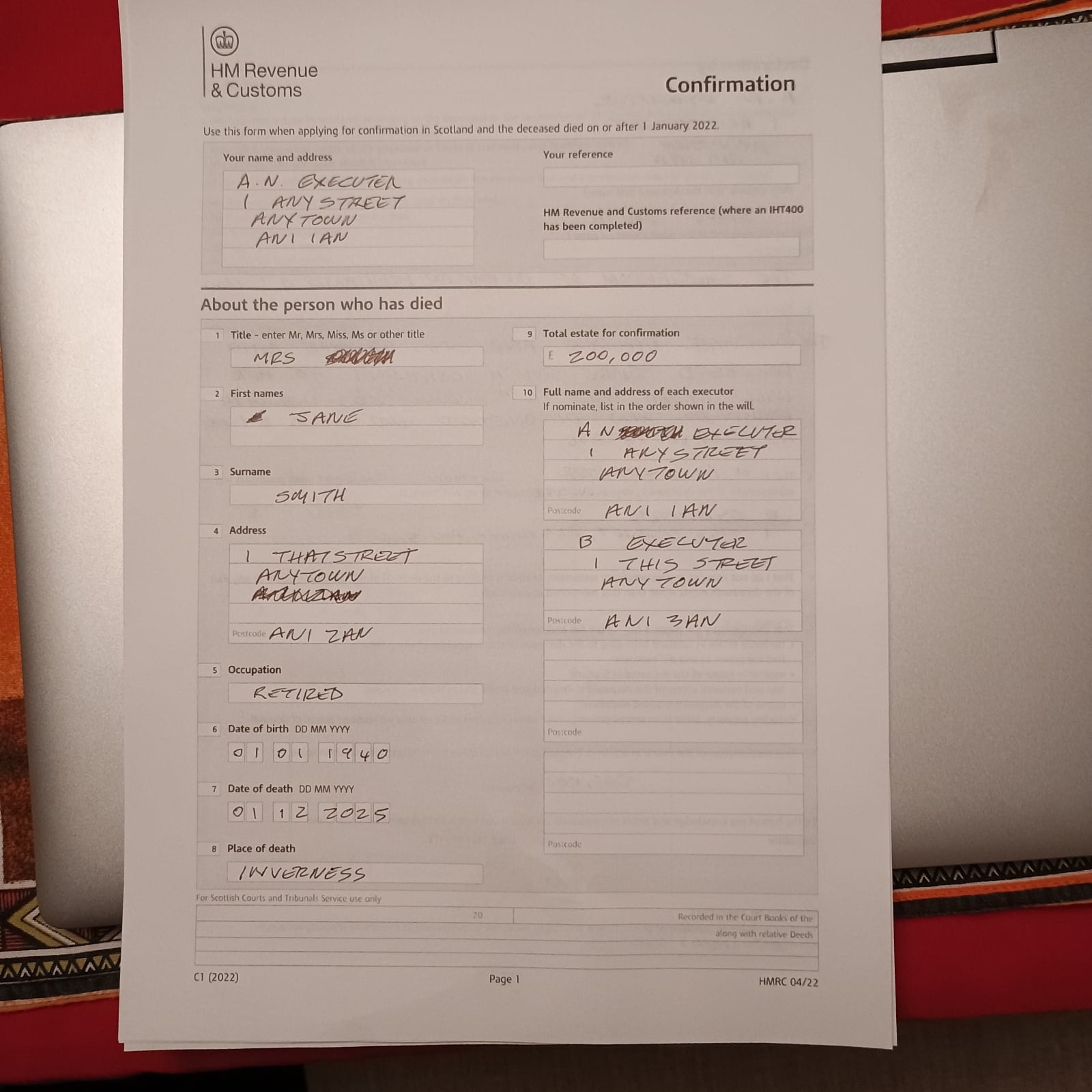 Then once appointed: apply for Confirmation to dad’s estate.